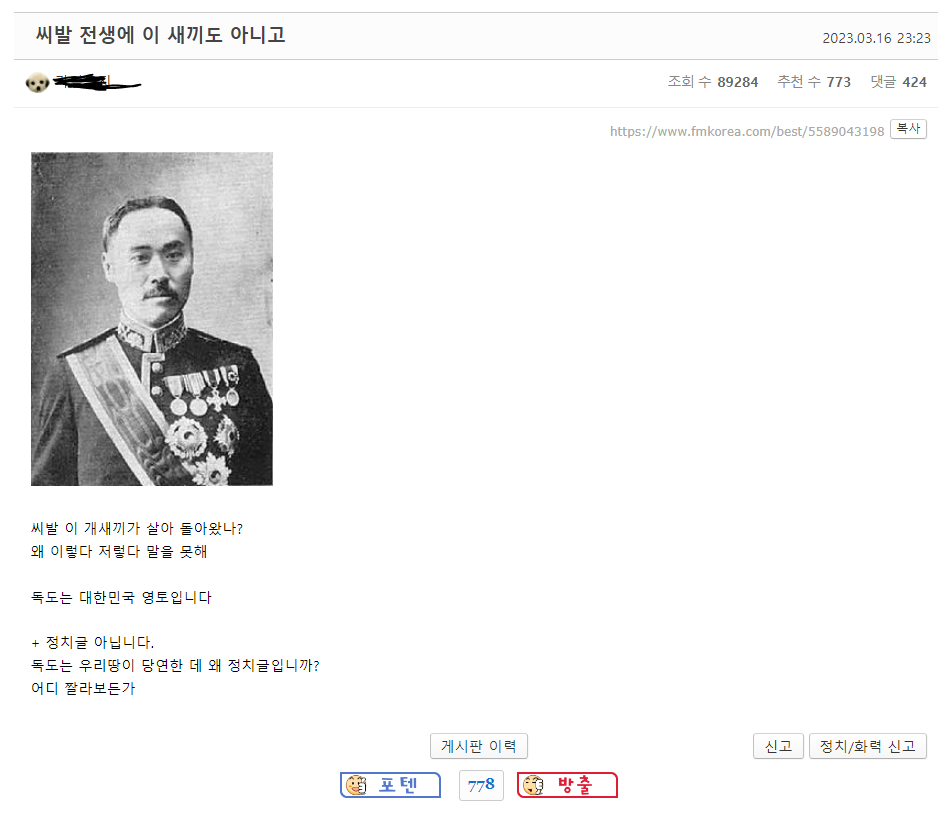 온 커뮤를 대동단결시킨 각하.....