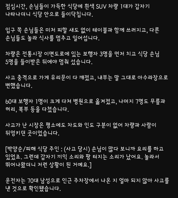 樂soccer [뉴스]가속페달과 브레이크를 착각해 식당으로 돌진.gif 작성시간23.03.21|조회수6,702 목록 댓글 15 글자크기 작게가 글자크기 크게가 다음검색 현재 게시글 추가 기능 열기 북마크 공유하기 신고 센터로 신고 댓글 15 댓글 리스트 작성시간 23.03.21 작성시간 23.03.21 급발진사고중80프로정도는 페달실수라고 한문철티비에서 그러더라구요 작성시간 23.03.21 작성시간 23.03.21 부전시장이네 저기 노인들 많은데... 어휴 작성시간 23.03.21 카페 방문해 더 많은 댓글 만나기!