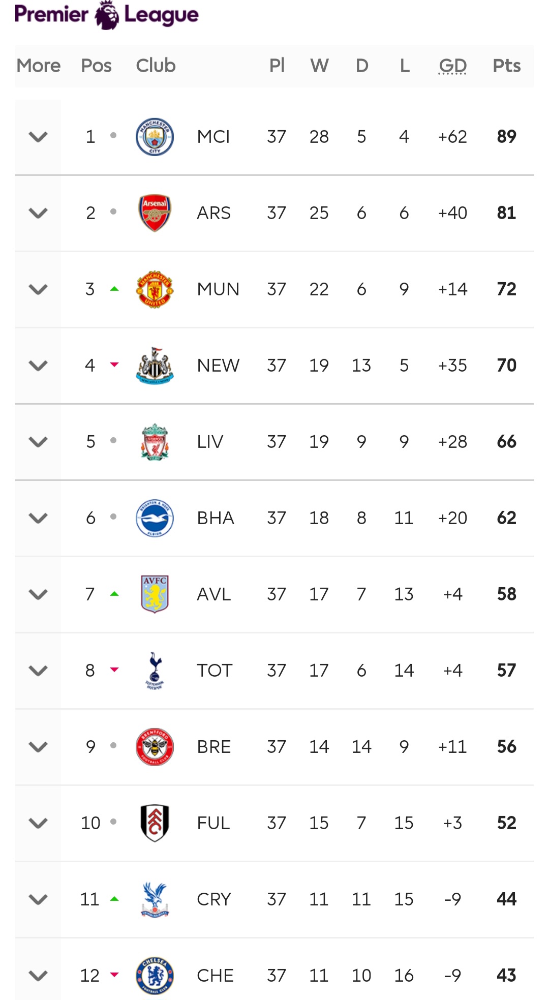 작성시간 23.05.26 와 아스날이 거의 8점 정도 앞서있었는데 완전히 뒤집었네요 ㄷㄷㄷ