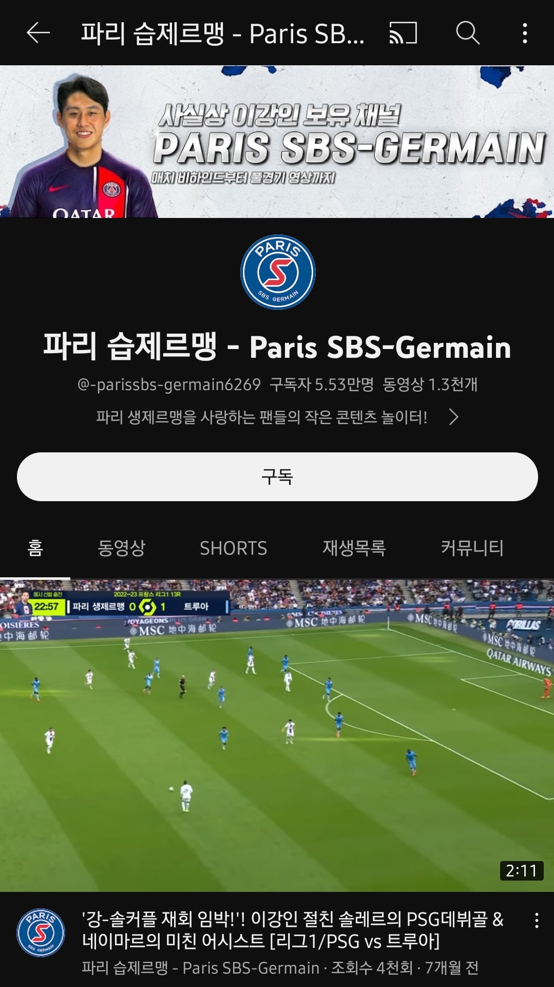 '사실상 이강인 보유 채널'ㅋㅋㅋㅋ