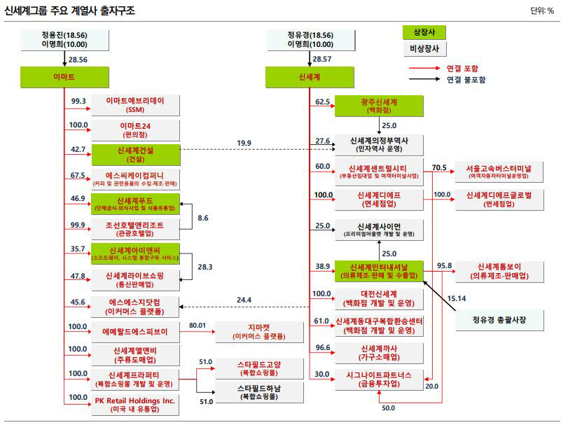 '정용진'과 '정유경' 남매가 같이 가지고 있는건