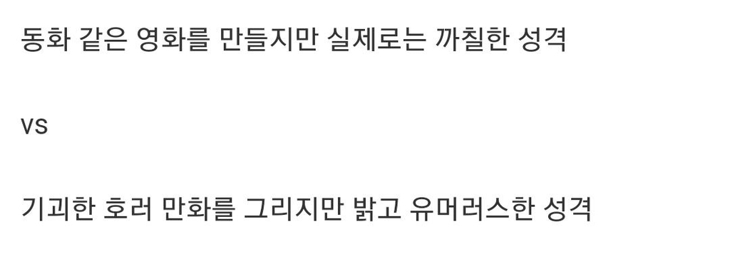 미야자키 하야오 vs 이토 준지 작성자가을날2|작성시간23.10.19|조회수1,370 목록 댓글 2 글자크기 작게가 글자크기 크게가 다음검색 현재 게시글 추가 기능 열기 북마크 공유하기 신고 센터로 신고 댓글 댓글 2 댓글쓰기 답글쓰기 댓글 리스트 작성자움프 | 작성시간 23.10.19 페미니즘이니 소수자인권이니 그런거 주장하면서 뒤로는 트위터 섹계 운영했었던 여자애 생각나네ㅋㅋㅋ 작성자리오넬 만길 | 작성시간 23.10.19 이토준지는 결말까지 괜찮은 작품이 많았으면 하는데 아쉬움 댓글 전체보기