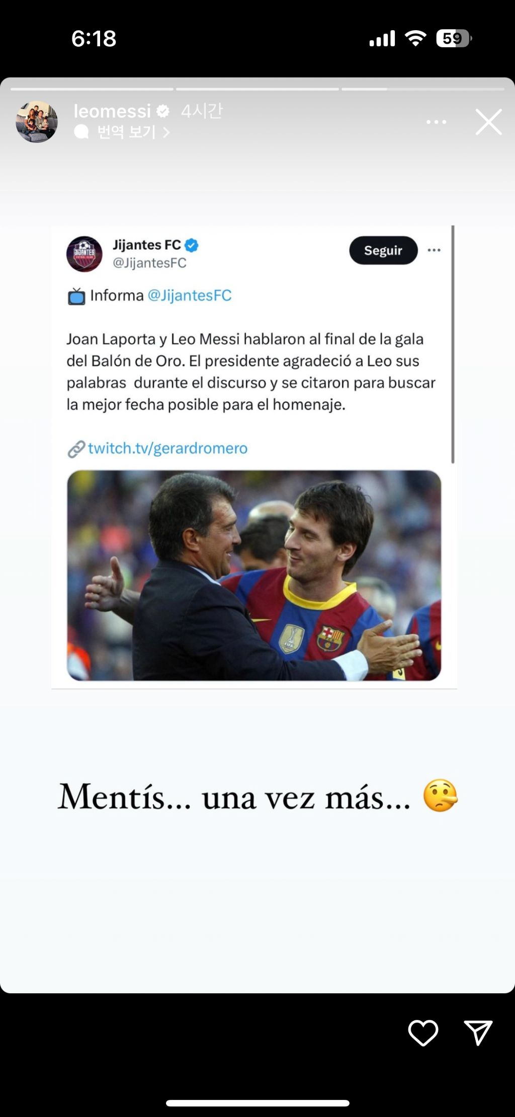 이를 본 메시의 인스타 스토리
