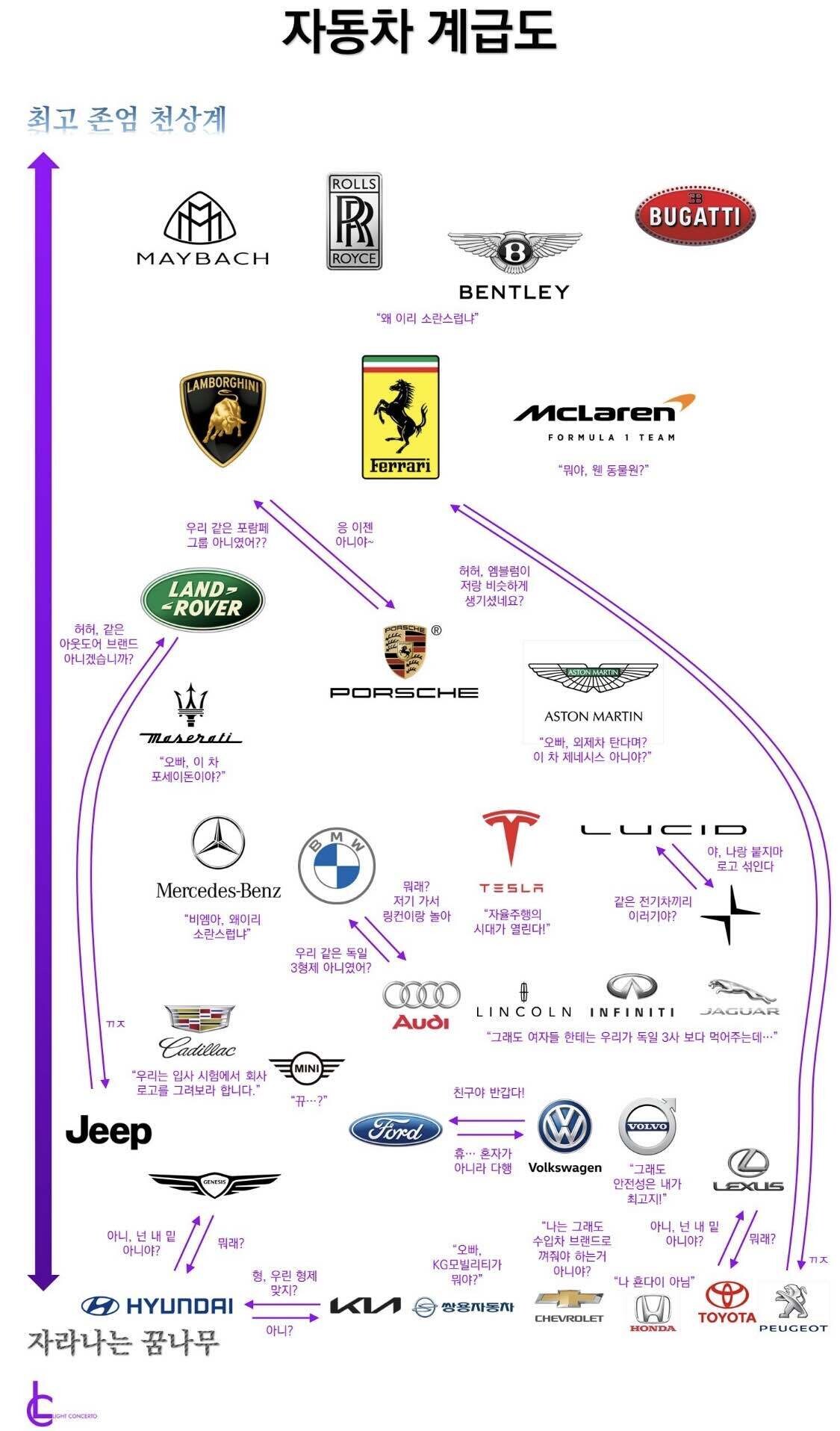 작성자께께오톡 작성시간 23.12.05 제네시스가 폭스바겐보다 낮을 이유가 없음 렉서스는 더더욱 그리고 테슬라나 폴스타가 이 그림에 껴있는것도 애매하고 람페맥은 롤스로이스 벤틀리 마이바흐랑 같은선상에 놓고 럭셔리 컴포트랑 럭셔리 스포츠로 나뉘는게 더 맞을듯 랜드로버 위치는 누가봐도 틀렸고 ㅋㅋㅋ