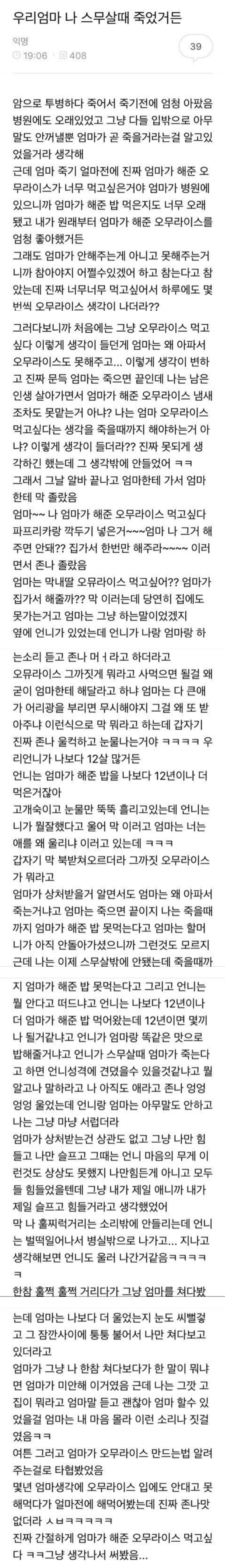 엄마가 없다는걸 지금 나이에도 상상하기 어려운데.. -