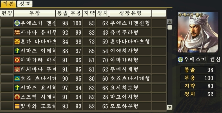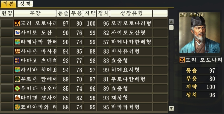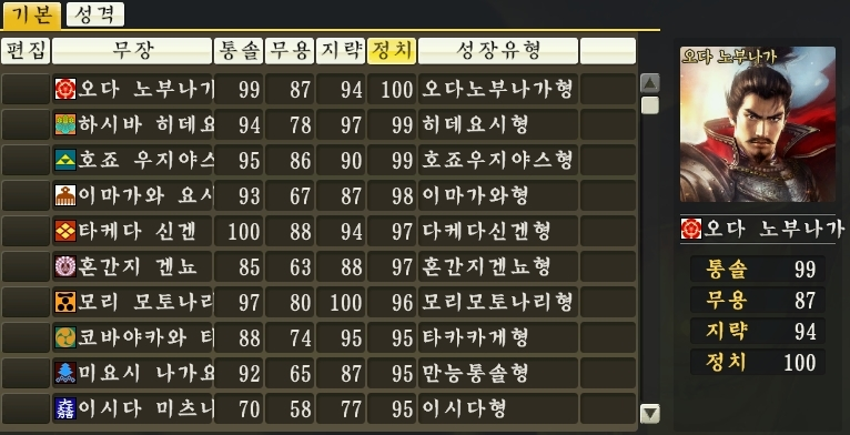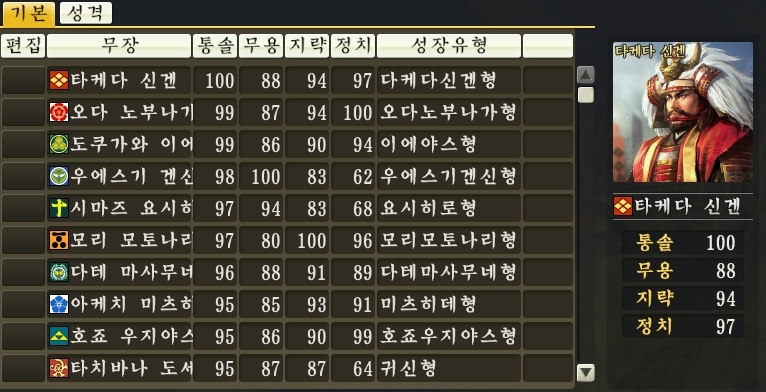 그럼 다른 전략게임의 동시대 일본 무장들은 어떻게 능력치를 배분 받았을까?
