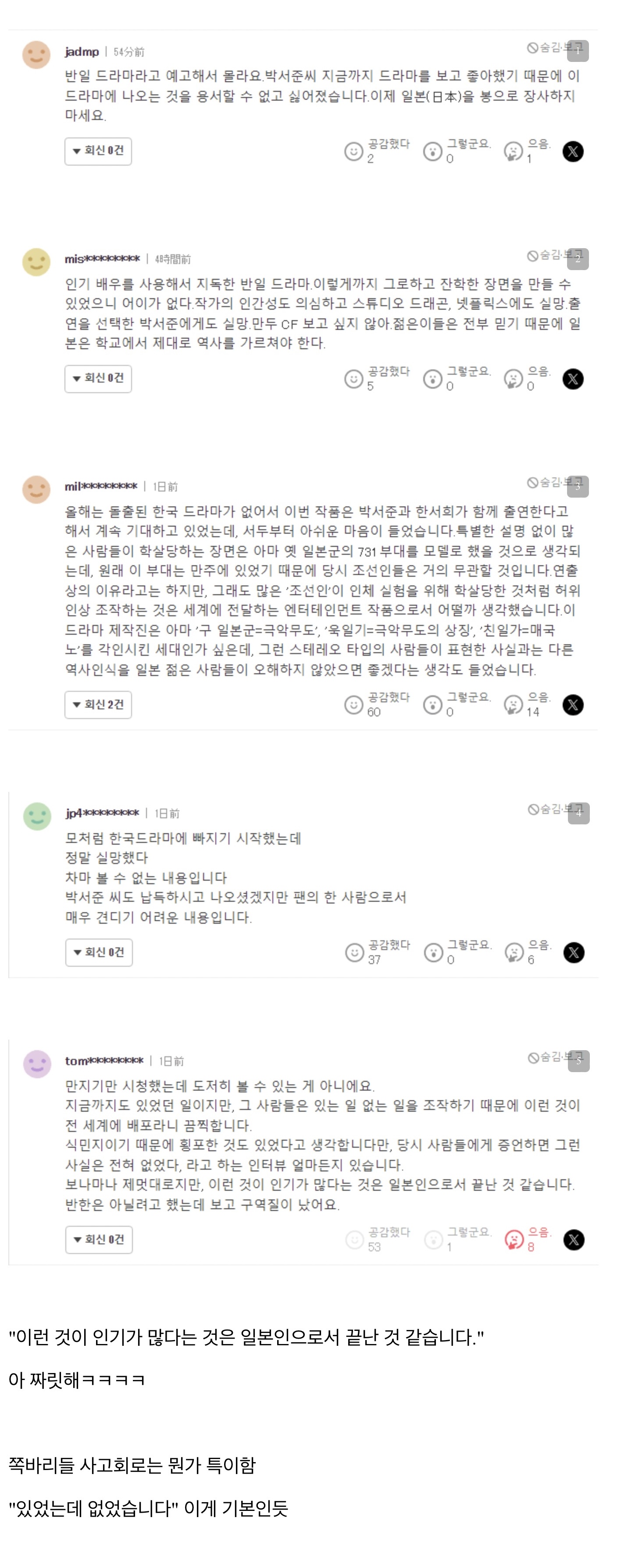 악질들. 반성, 속죄하는 마음으로 살아도 모자랄 판에. 피해자인 척은 하지 말아야지.