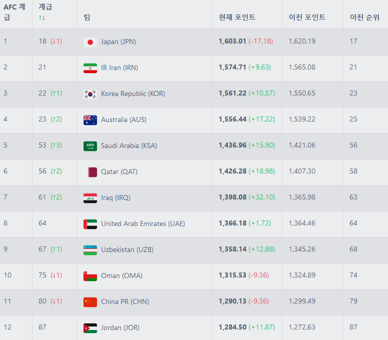 우리나라가 일본보다 피파랭킹 앞선적 있나요?