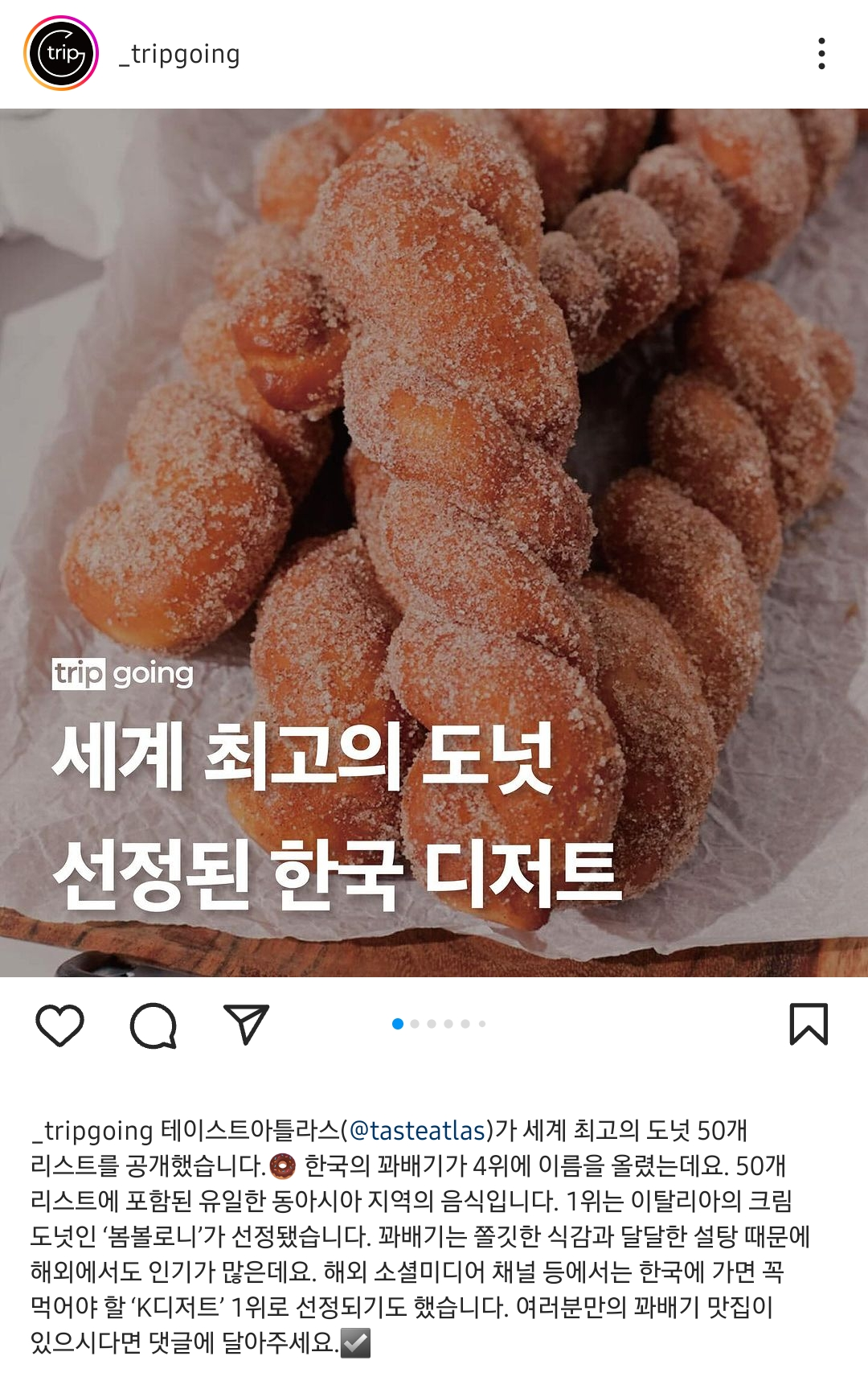 세계 최고의 도넛에 선정된 한국 디저트 작성자김지우|작성시간24.02.20|조회수15,744 목록 댓글 23 글자크기 작게가 글자크기 크게가 다음검색 현재 게시글 추가 기능 열기 북마크 공유하기 신고 센터로 신고 댓글 댓글 23 댓글쓰기 답글쓰기 댓글 리스트 작성자이지금아이유 | 작성시간 24.02.20 킹배기 작성자https://m.cafe.daum.net/rocksoccer | 작성시간 24.02.20 갓 만든 꽈배기는 ㄷㄷㄷ 작성자Arsenal No.1 | 작성시간 24.02.20 ㅇㅈ 작성자I.B.I LUV | 작성시간 24.02.20 이거 국뽕해도 되나 ㅋ 작성자jangs | 작성시간 24.02.21 개 맛있지 댓글 전체보기