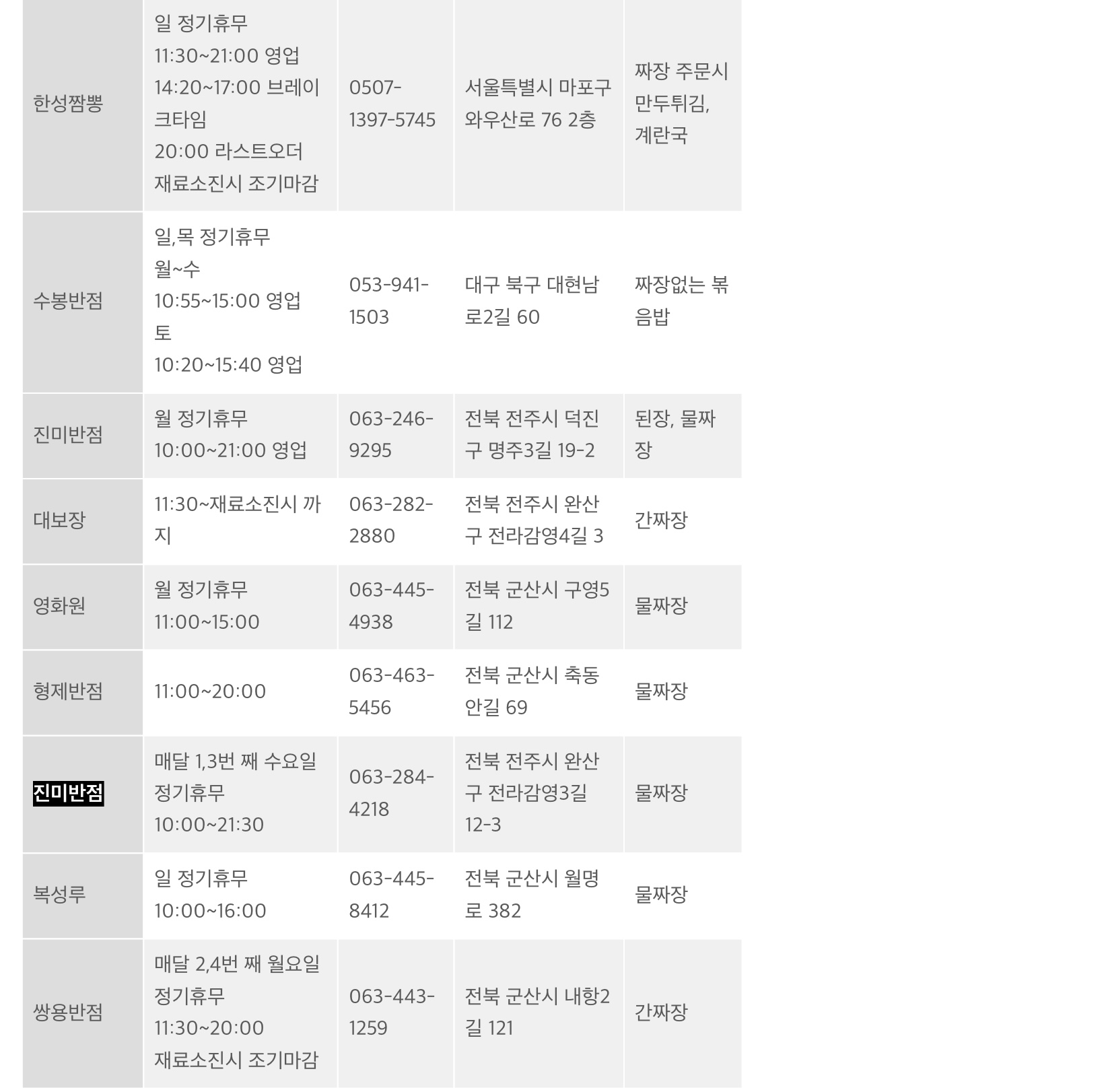얼마 전 방송된 짜장면 랩소디(넷플에도 있음)에 나온 음식점 리스트입니다.
