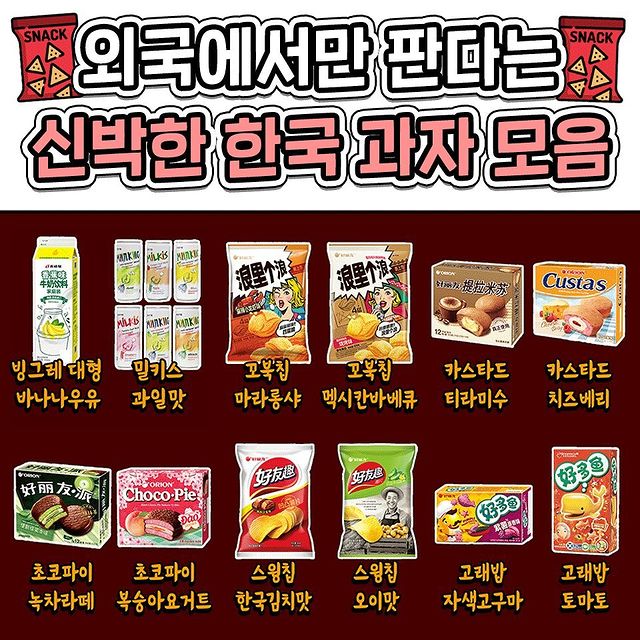 樂soccer [음식]외국에서만 판다는 신박한 한국 과자 모음.jpg 작성시간24.03.29|조회수4,694 목록 댓글 3 글자크기 작게가 글자크기 크게가 다음검색 현재 게시글 추가 기능 열기 북마크 공유하기 신고 센터로 신고 댓글 3 댓글 리스트 작성시간 24.03.29 대형 바나나우유 땡긴다 작성시간 24.03.29 스윙칩 오이맛은 제발 들어오지 마라 ㄷㄷ 작성시간 24.03.29 카스타드랑 초코파이 국대에도 출시해주지 카페 방문해 더 많은 댓글 만나기!