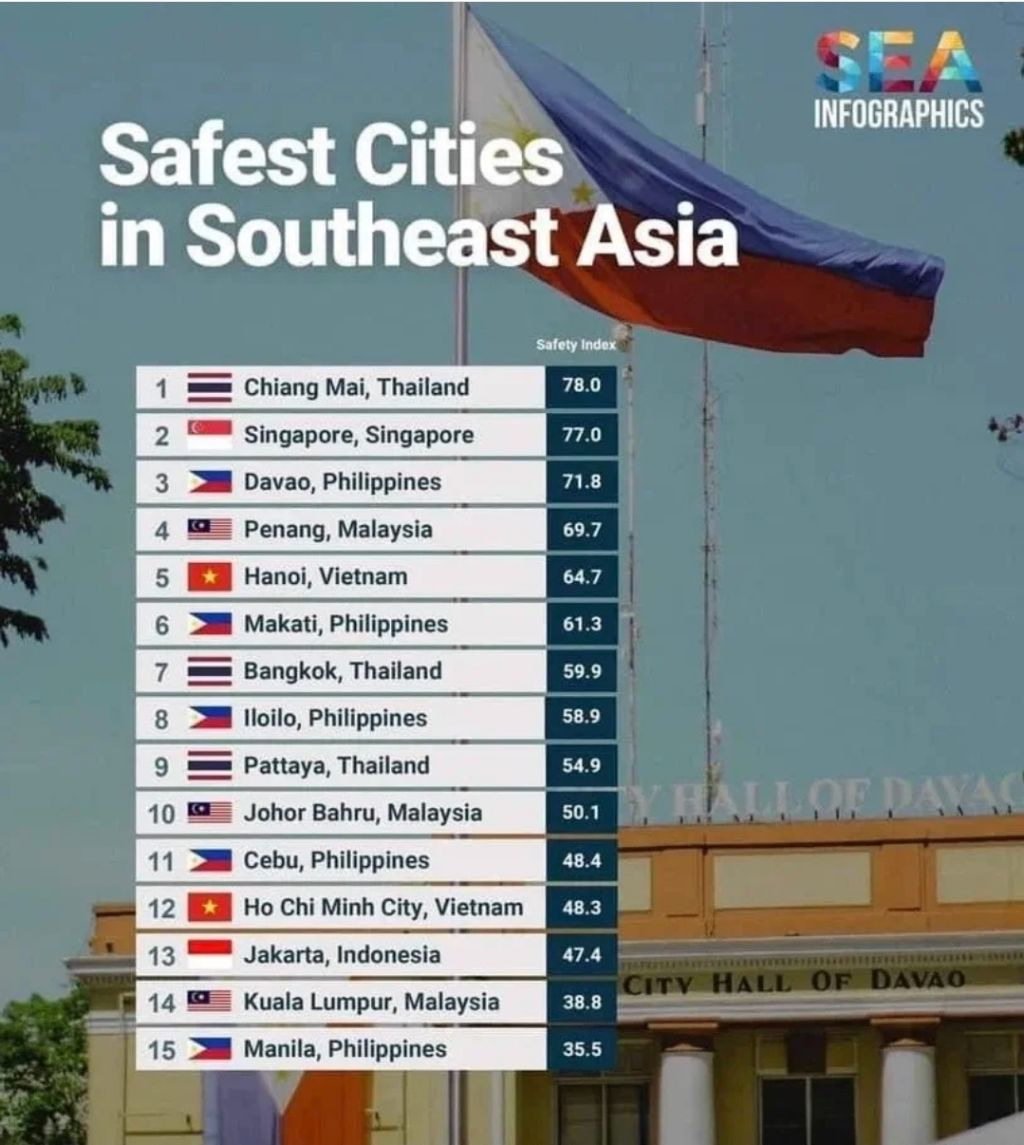 동남아시아 안전한 도시 순위 작성자그럼에도 살아냅시다|작성시간24.08.13|조회수13,454 목록 댓글 15 글자크기 작게가 글자크기 크게가 다음검색 현재 게시글 추가 기능 열기 북마크 공유하기 신고 센터로 신고 댓글 댓글 15 댓글쓰기 답글쓰기 댓글 리스트 답댓글 작성자Soccist | 작성시간 24.08.13 첸돌 존맛 작성자축구공 | 작성시간 24.08.13 동남아 작성자지은이아이유 | 작성시간 24.08.13 와 싱가폴보다 치앙마이가 높네 작성자채개바리 | 작성시간 24.08.13 치안마이라서 치안이 좋나 ㅎㅎ 작성자jangs | 작성시간 24.08.14 와 싱가포르보다 치앙마이가 더 높다니 댓글 전체보기