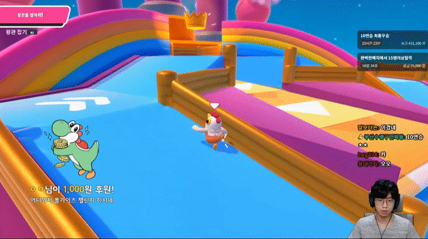 작성자별보는벼슬아치 작성시간 20.08.18 이 사람이 폴가이즈에 페이커임. 바닥맵은 그냥 녹두로 손바닥 안임. 보는 순간 찜해야함을 느끼고 행했음.