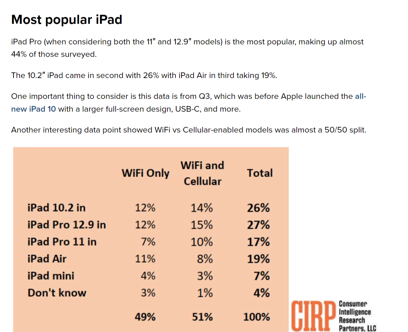 아이패드 모델별 판매량 작성자민서애비명수|작성시간24.11.09|조회수2,331 목록 댓글 7 글자크기 작게가 글자크기 크게가 아이패드(일반) 26%아이패드 프로(12.9) 27%아이패드 프로(11) 17%아이패드 에어 19%아이패드 미니 7%생각보다 프로 라인이 많이 팔림 다음검색 현재 게시글 추가 기능 열기 북마크 공유하기 신고 센터로 신고 댓글 댓글 7 댓글쓰기 답글쓰기 댓글 리스트 작성자Francesc Fàbregas | 작성시간 24.11.09 어차피 살거 큰걸로 사는구나 작성자범고래어흥 | 작성시간 24.11.09 애플이 기가 막히게 급차이를 둔 덕에 기본 모델에서 출발해서 프로 모델 가는 경우가 있습니다 답댓글 작성자개밥 | 작성시간 24.11.09 바로 저네요.. ㄷㄷㄷ 답댓글 작성자예비군훈련질문받음 | 작성시간 24.11.09 일단 주사율부터가.. 작성자아메리카노 | 작성시간 24.11.09 ㄷㄷ 댓글 전체보기
