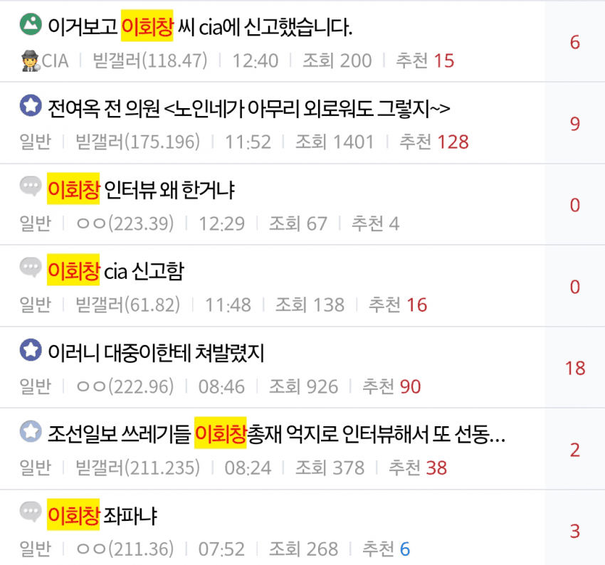 서울대 아니면 사람취급도 안하는 회창 할배 늙으니 볼품없네 인생무상...