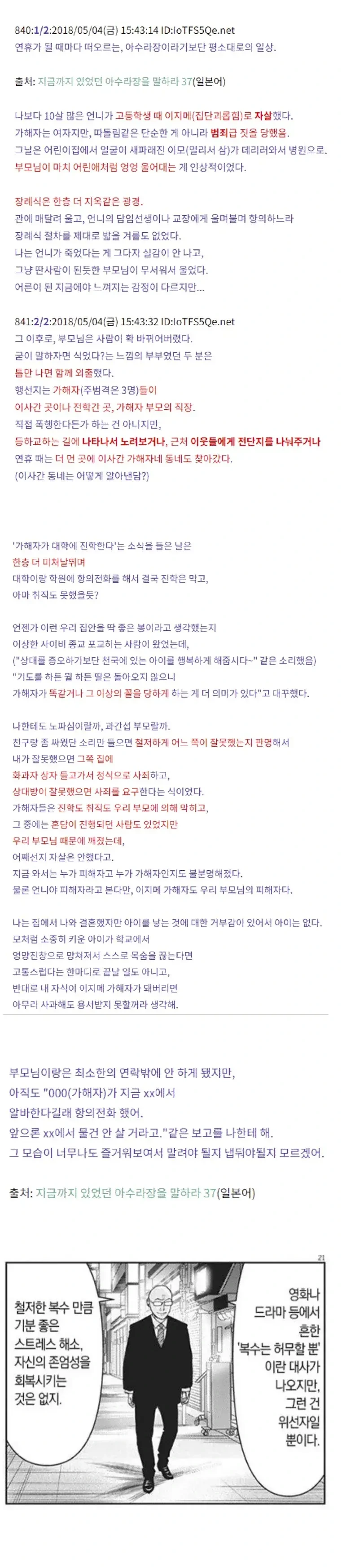 작성자Dennis Cirkin 작성시간 25.02.10 왕따 가해자가 왜 피해자인거지 저 글적은 사람은 부모님 마음 이해못하는듯. 자기인생 바쳐서 딸 복수 하고 있는 부모가 또다른 피해자면 피해자지