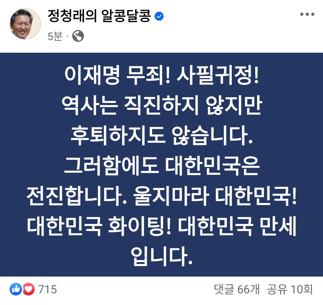 [정치]정청래의 알콩달콩 작성자러바오|작성시간25.03.26|조회수2,163 목록 댓글 3 글자크기 작게가 글자크기 크게가 다음검색 현재 게시글 추가 기능 열기 북마크 공유하기 신고 센터로 신고 댓글 댓글 3 댓글쓰기 답글쓰기 댓글 리스트 작성자yunakim | 작성시간 25.03.26 이 시대의 참 인플루언서 작성자Pringles | 작성시간 25.03.26 이제 파면입니다. 멋집니다 이 시대의 참 법사위원장님. 작성자고구려 | 작성시간 25.03.26 이 시대의 참 얼굴 ㄷㄷ 댓글 전체보기