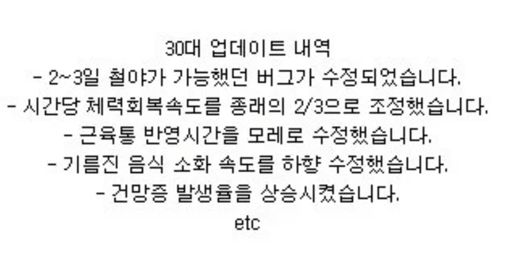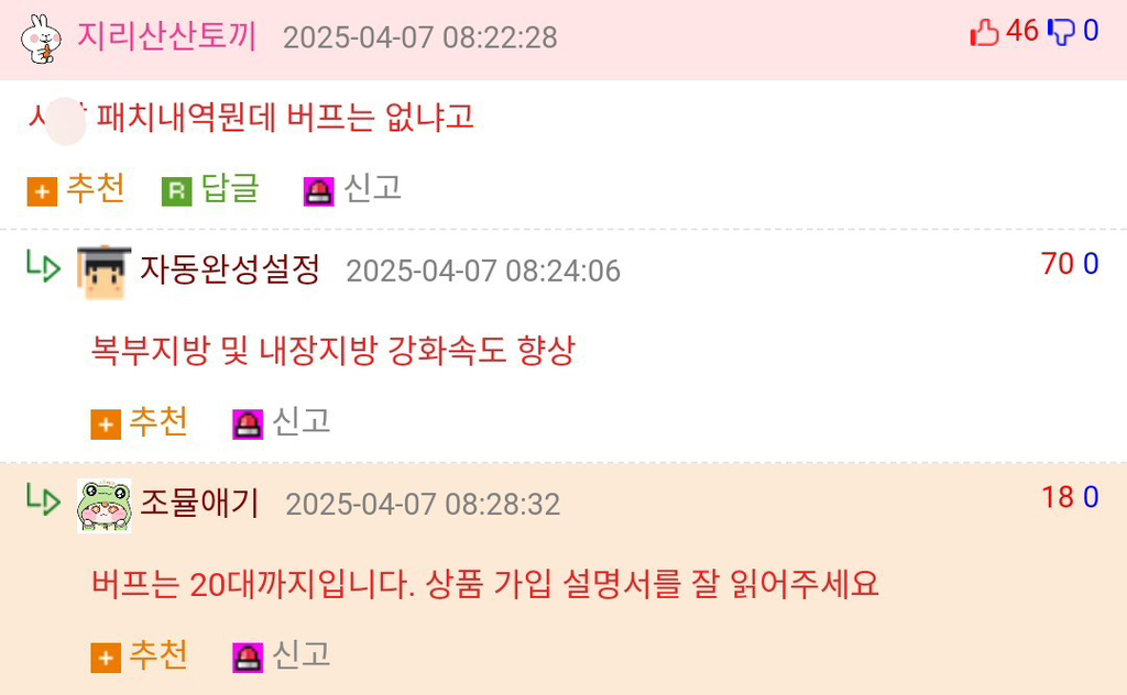 30대 업데이트 내역 작성자가을날3|작성시간25.04.08|조회수3,447 목록 댓글 1 글자크기 작게가 글자크기 크게가 다음검색 현재 게시글 추가 기능 열기 북마크 공유하기 신고 센터로 신고 댓글 댓글 1 댓글쓰기 답글쓰기 댓글 리스트 작성자흥민재 | 작성시간 25.04.08 40대 업데이트는 더 가관인겠네 ㅠㅠ 댓글 전체보기
