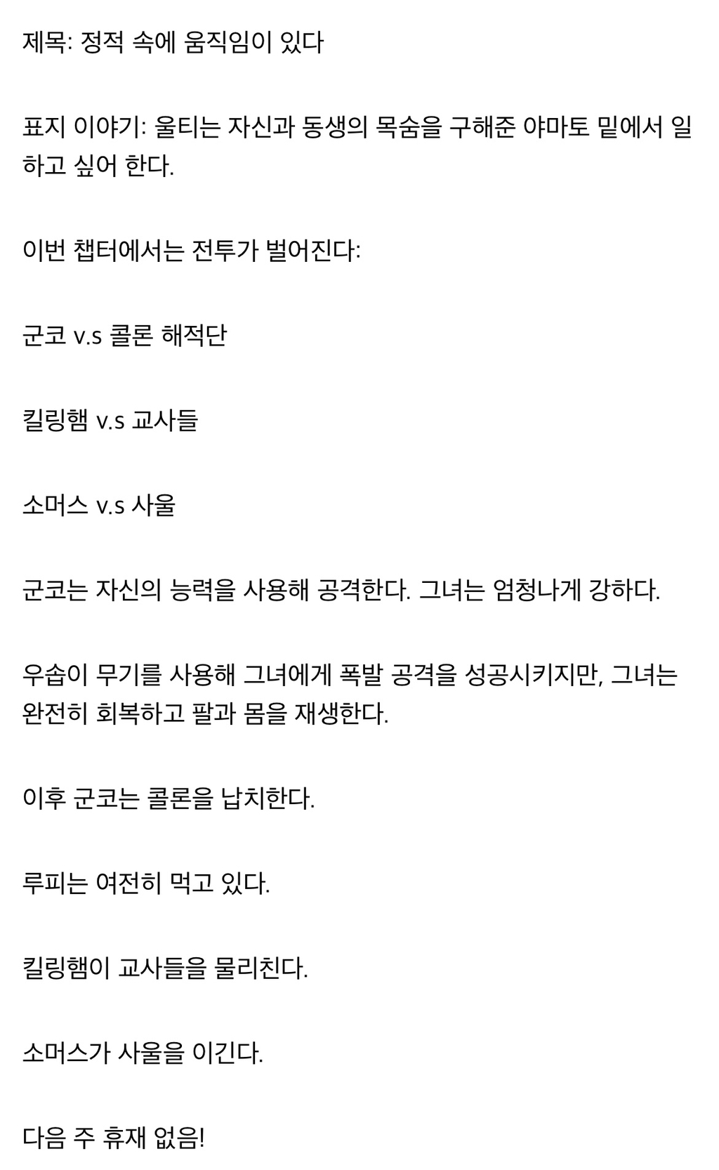 원피스 1146 짧은 글스포 작성자가을날3|작성시간25.04.16|조회수1,193 목록 댓글 3 글자크기 작게가 글자크기 크게가 출처 디씨 다음검색 현재 게시글 추가 기능 열기 북마크 공유하기 신고 센터로 신고 댓글 댓글 3 댓글쓰기 답글쓰기 댓글 리스트 작성자마일즈 모랄레스 | 작성시간 25.04.16 뭐야 신기단도 오로성처럼 불사받은건가?? 답댓글 작성자이연희 | 작성시간 25.04.16 갈링성이 오로성으로 들어가버려서 갈링성이 신의가사단한테 부여한거 아닐까요 답댓글 작성자마일즈 모랄레스 | 작성시간 25.04.16 이연희 개빡쌔겠네요 어우 댓글 전체보기