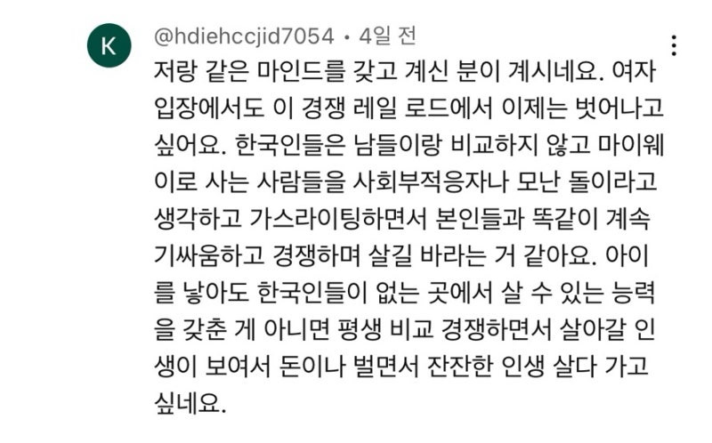 작성시간 25.04.28 이런 글 보면 항상 남탓만 하는 사람들만 나옴 ㅋㅋ 자기자신부터 바뀔 생각안함 ㅋㅋ