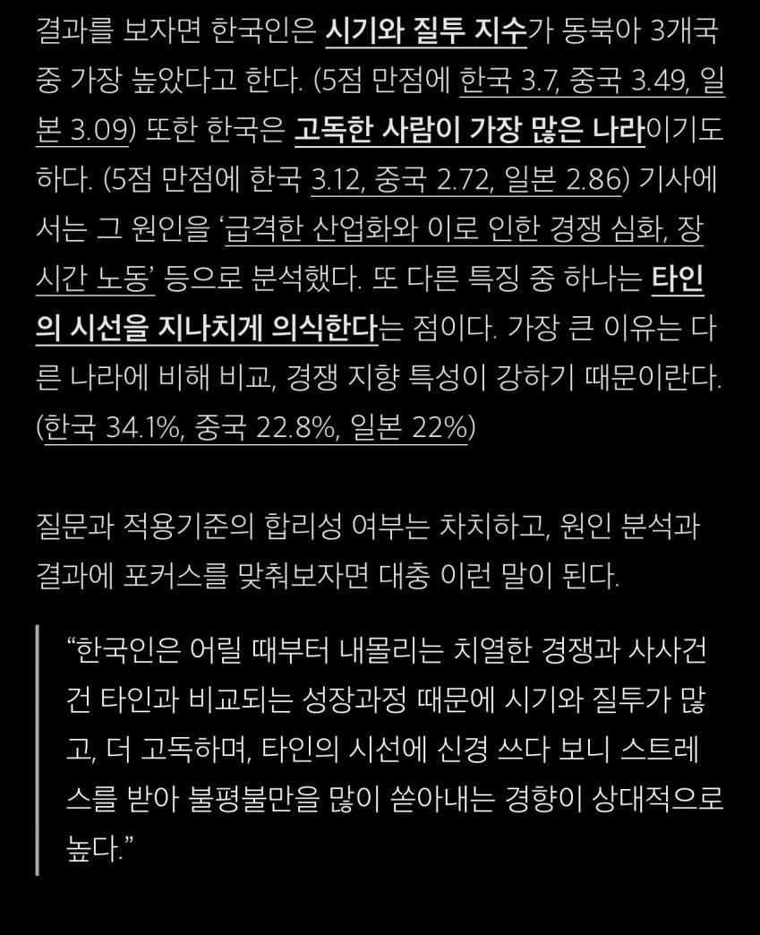 작성시간 25.04.28 다른 나라는 한국에서 소위 3d로 분류되는 블루칼라 직종도 집도 사고 때되면 해외로 휴가도 갈정도로 여유로운 삶이 가능하다는데. 한국은 부모가 쩐을 쥐고 있거나 본인이 심하게 출세하지 않으면 잘 살기 어려운 나라라 서로 비교하고 끕 나누고 하는거 아닐까 생각해봄. 곶간에서 인심도 난다고 사는게 팍팍하니까 다들 빡쳐있고 비하하기 쉬워지는듯