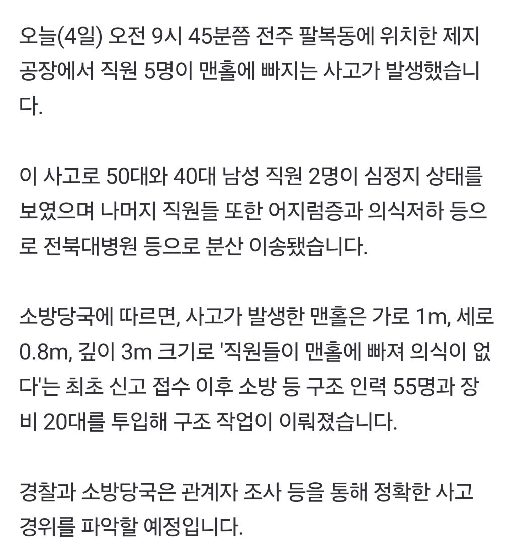 작성시간 25.05.04 다른 기사보니 넘 안타까운게...한분이 왜 거길 들어가신지는 모르나 쓰러져있어서 다들 구하러 들어가셨다가...ㅠ