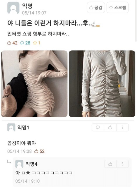 피팅모델샷 vs 현실샷 작성자친정간다며..??|작성시간20.05.31|조회수3,293 목록 댓글 6 글자크기 작게가 글자크기 크게가 곱창 미친 ㅋㅋㅋ 다음검색 현재 게시글 추가 기능 열기 북마크 공유하기 신고 센터로 신고 댓글 댓글 6 댓글쓰기 답글쓰기 댓글 리스트 작성자NAVY | 작성시간 20.05.31 ㅋㅋㅋㅋㅋㅋㅋㅋㅋㅋㅋㅋㅋㅋㅋㅋㅋㅋㅋ 작성자참치 | 작성시간 20.05.31 ㅋㅋㅋ곱창잼 작성자권 지 용 | 작성시간 20.05.31 오른쪽분도 말랐는데 그냥 옷이 원래 큰거같네요 ㅋㅋㅋ 쇼핑몰 사진은 사기가 많아서 조심해야함 답댓글 작성자최강희 | 작성시간 20.05.31 포토샵도 있고 등 뒤에 옷핀으로 다 고정하고 촬영해서.. 작성자다현 | 작성시간 20.05.31 ㅋㅋㅋㅋㅋㅋ 댓글 전체보기