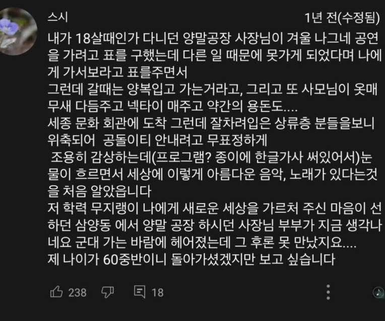 사람은 자신의 세계를 넓혀준 사람을 잊지 못한다 작성자가을날3|작성시간25.05.20|조회수3,904 목록 댓글 1 글자크기 작게가 글자크기 크게가 다음검색 현재 게시글 추가 기능 열기 북마크 공유하기 신고 센터로 신고 댓글 댓글 1 댓글쓰기 답글쓰기 댓글 리스트 작성자차비올라 | 작성시간 25.05.20 ㄷㄷㄷㄷㄷ 댓글 전체보기