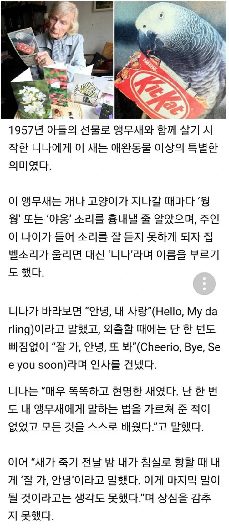 樂soccer 55년 살았던 앵무새의 마지막 인삿말 작성시간25.06.02|조회수26,391 목록 댓글 12 글자크기 작게가 글자크기 크게가 다음검색 현재 게시글 추가 기능 열기 북마크 공유하기 신고 센터로 신고 댓글 12 댓글 리스트 작성시간 25.06.03 다시 보잔 말을 안 한.. 답댓글 작성시간 25.06.03 그러게요 ㅠㅠㅠㅠ 작성시간 25.06.03 ㅠㅠㅠㅠㅠㅠㅠ 작성시간 25.06.03 ㅠㅠ또봐가 없다니... 작성시간 25.06.03 또 봐 라는 말을 안했네......ㅠㅠ 카페 방문해 더 많은 댓글 만나기!