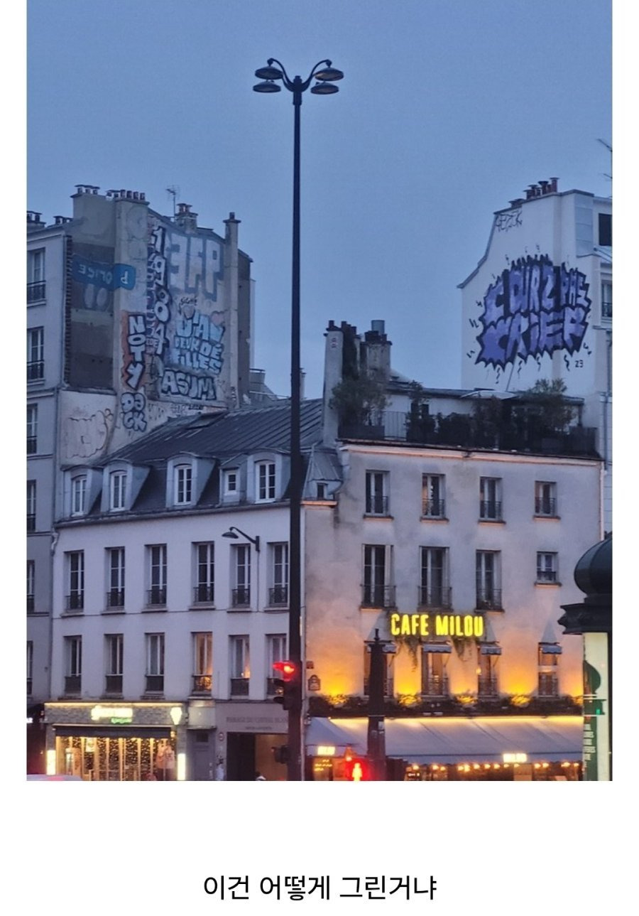 작성시간 25.06.13 같은 프랑스라도 어느 동네인지가 많이 중요하겠죠. 그래피티가 ㅈㄴ 많은 동네는 피하겠습니다.