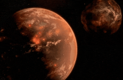 그 충돌로 지구 멘틀의 상당 부분 파편이 우주로 튀어나가