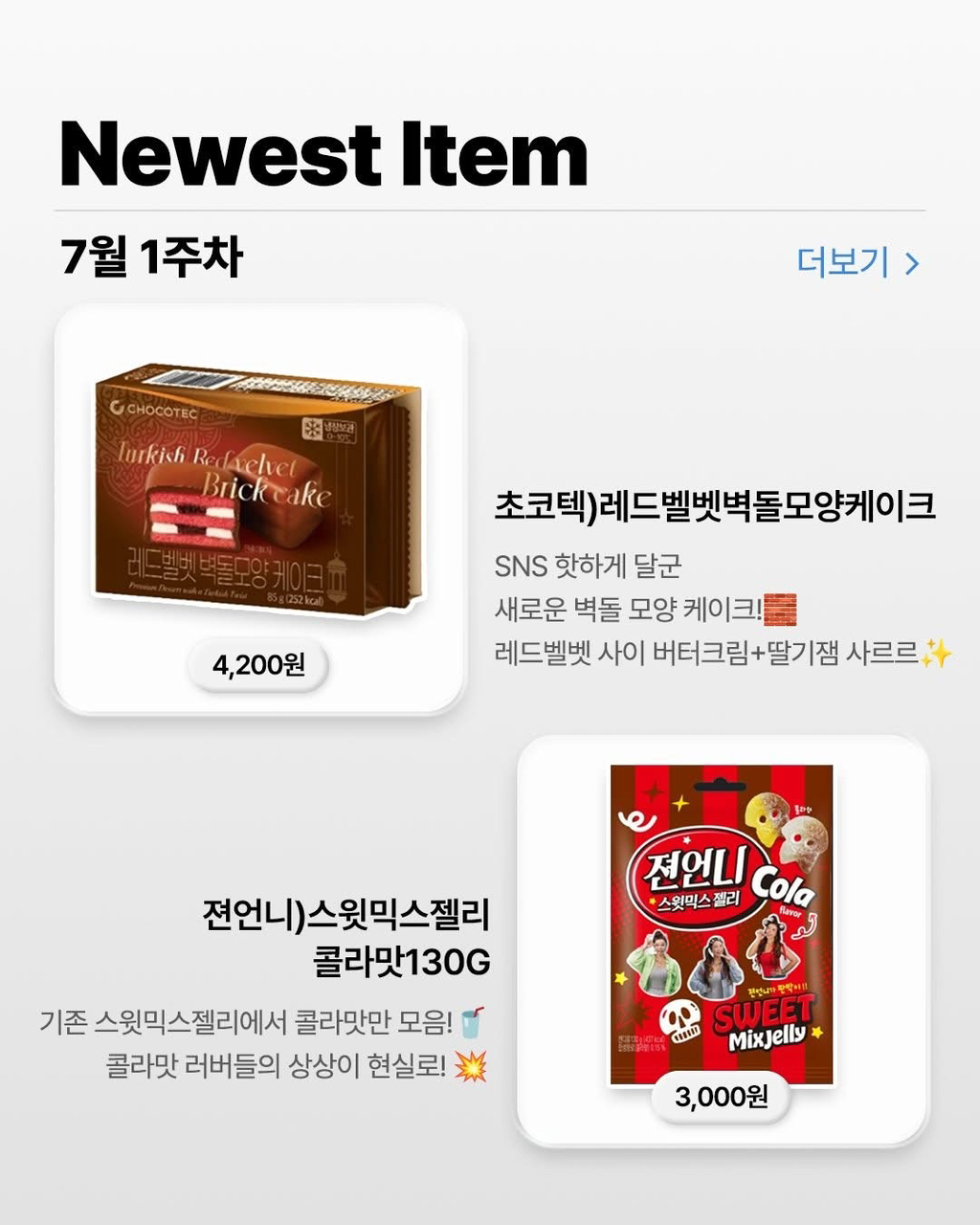 GS25 7월 첫주 신상 작성자가을날3|작성시간25.07.03|조회수5,840 목록 댓글 4 글자크기 작게가 글자크기 크게가 다음검색 현재 게시글 추가 기능 열기 북마크 공유하기 신고 센터로 신고 댓글 댓글 4 댓글쓰기 답글쓰기 댓글 리스트 작성자오스먼트 | 작성시간 25.07.03 오 통다리 맛있겠다. 작성자알레띠 | 작성시간 25.07.03 칸초 멜론맛 기대기대 작성자달좋은밤 | 작성시간 25.07.03 벽돌게이크 ㄷㄷ 작성자이서연 | 작성시간 25.07.04 오뚜기 스프 크리스피롤 맛있었는데 카레도 먹어봐야겠당 댓글 전체보기