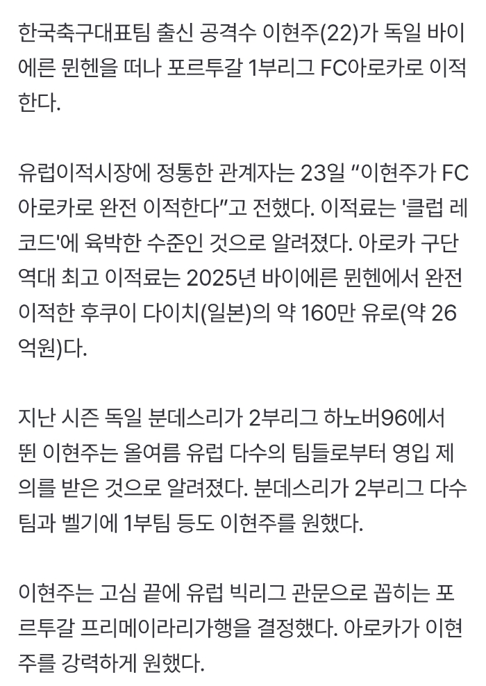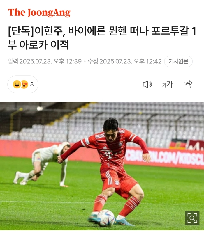 [축구기사][단독] 이현주, 바이에른 뮌헨 떠나 포르투갈 1부 아로카 이적 작성자서울스날|작성시간25.07.23|조회수2,367 목록 댓글 1 글자크기 작게가 글자크기 크게가 https://m.sports.naver.com/wfootball/article/025/0003457070 다음검색 현재 게시글 추가 기능 열기 북마크 공유하기 신고 센터로 신고 댓글 댓글 1 댓글쓰기 답글쓰기 댓글 리스트 작성자1973_FCPS | 작성시간 25.07.23 유럽에서 원없이 뛰어보고, 국내복귀는 꼭 친정으로 와주길 ㅜㅜ 댓글 전체보기