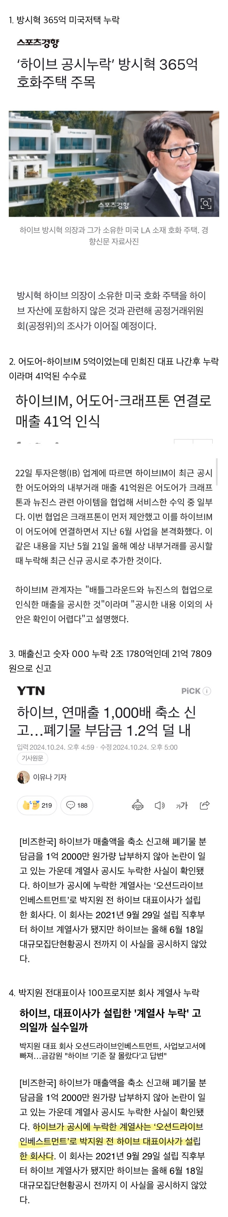 [연예]하이브 특별세무조사 받는 이유 ㄷㄷ 작성자치즈팝|작성시간25.07.29|조회수13,590 목록 댓글 11 글자크기 작게가 글자크기 크게가 다음검색 현재 게시글 추가 기능 열기 북마크 공유하기 신고 센터로 신고 댓글 댓글 11 댓글쓰기 답글쓰기 댓글 리스트 답댓글 작성자랜더쓱필드 | 작성시간 25.07.29 요청 없이는 저렇게 절대 못해주죠 작성자독거노인 | 작성시간 25.07.29 제대로 탈탈 털어야함 작성자산티아고베르나베우 | 작성시간 25.07.29 부자 증세는 이런걸로 작성자악플캡처고발위원회 | 작성시간 25.07.29 탈탈~ 작성자kangws806 | 작성시간 25.07.30 흐익 댓글 전체보기