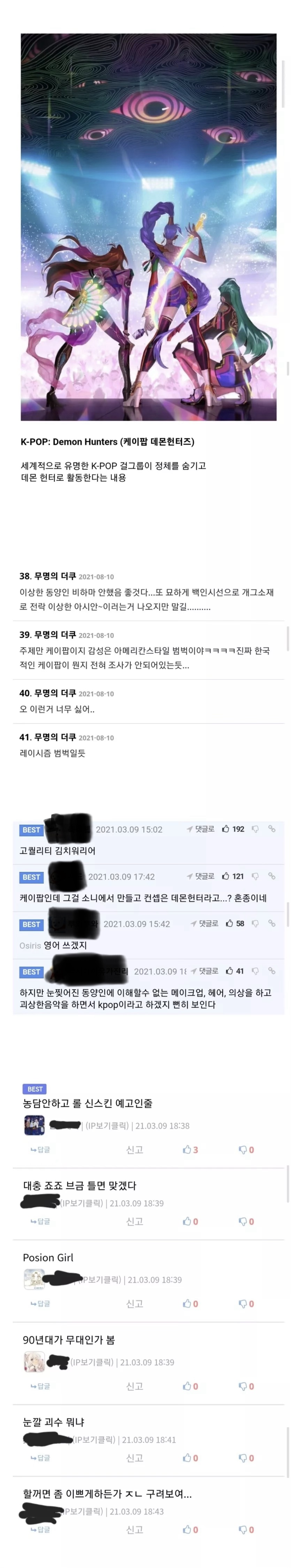 케이팝데몬 헌터스는... 처음에 대부분 커뮤니티에서 저런반응이었고