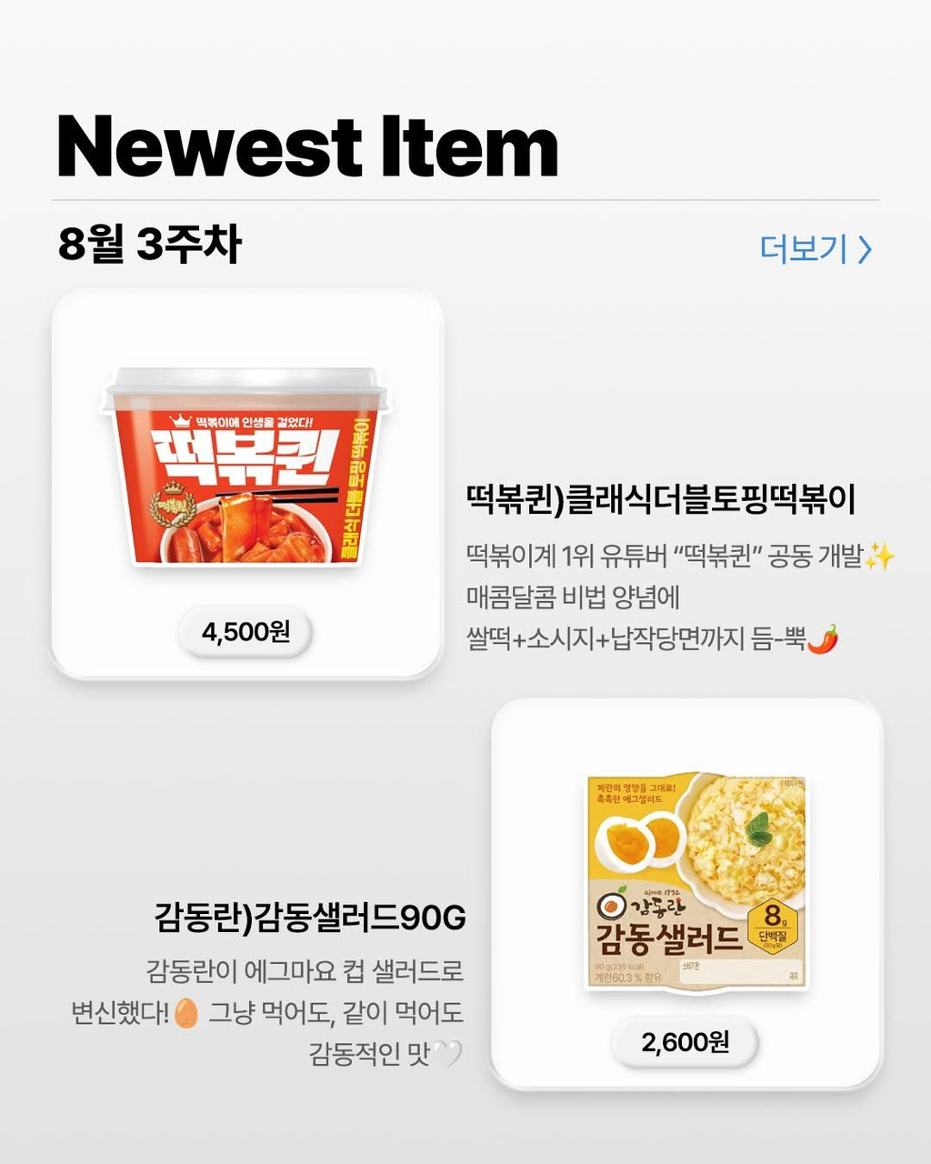GS25 8월 3주차 신상 작성자가을날3|작성시간25.08.22|조회수910 목록 댓글 2 글자크기 작게가 글자크기 크게가 다음검색 현재 게시글 추가 기능 열기 북마크 공유하기 신고 센터로 신고 댓글 댓글 2 댓글쓰기 답글쓰기 댓글 리스트 작성자태티서 | 작성시간 25.08.22 감동란 샐러드 맛있겠다 작성자밀키스 | 작성시간 25.08.22 땡기는게없군 댓글 전체보기