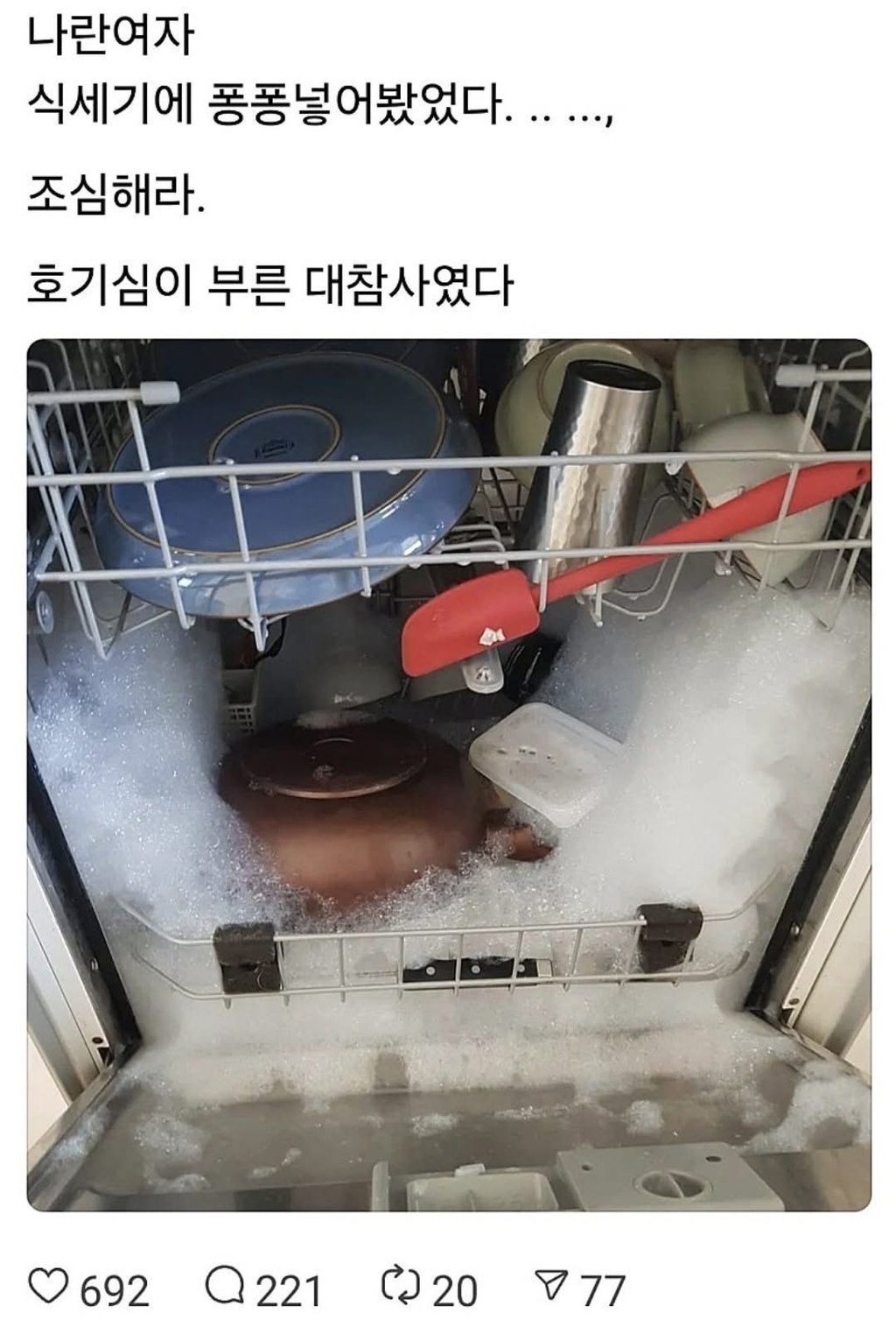 樂soccer 식기세척기에 퐁퐁을 넣어보았다 작성시간25.08.25|조회수19,928 목록 댓글 7 글자크기 작게가 글자크기 크게가 다음검색 현재 게시글 추가 기능 열기 북마크 공유하기 신고 센터로 신고 댓글 7 댓글 리스트 작성시간 25.08.25 와 저거 어떻게 치움 작성시간 25.08.26 작성시간 25.08.26 호기심으로 치부하기엔 멍청함이 너무 컸지 작성시간 25.08.26 저 설치기산데 ㅋㅋㅋㅋㅋ절대절대 넣으시면 안된다고 엄청 겁주고 나오는데실제로 넣는사람 처음봄ㅋㅋ 작성시간 25.08.26 행굼모드없음? 카페 방문해 더 많은 댓글 만나기!