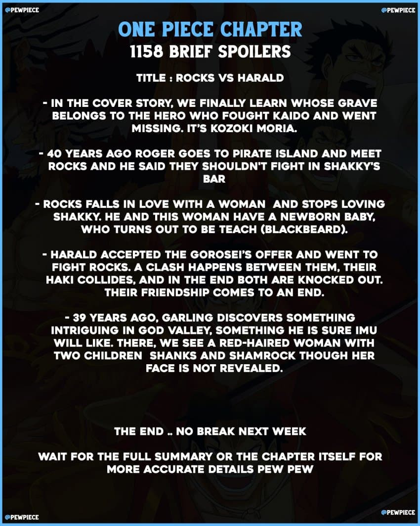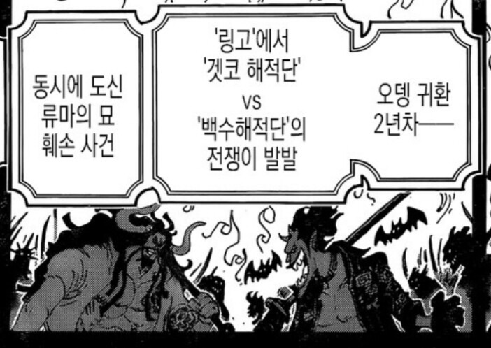 표지 스토리에서 마침내 카이도와 싸우고 실종된 영웅의 무덤이 누구의 것인지 밝혀진다. 그것은 코즈키 모리아다.