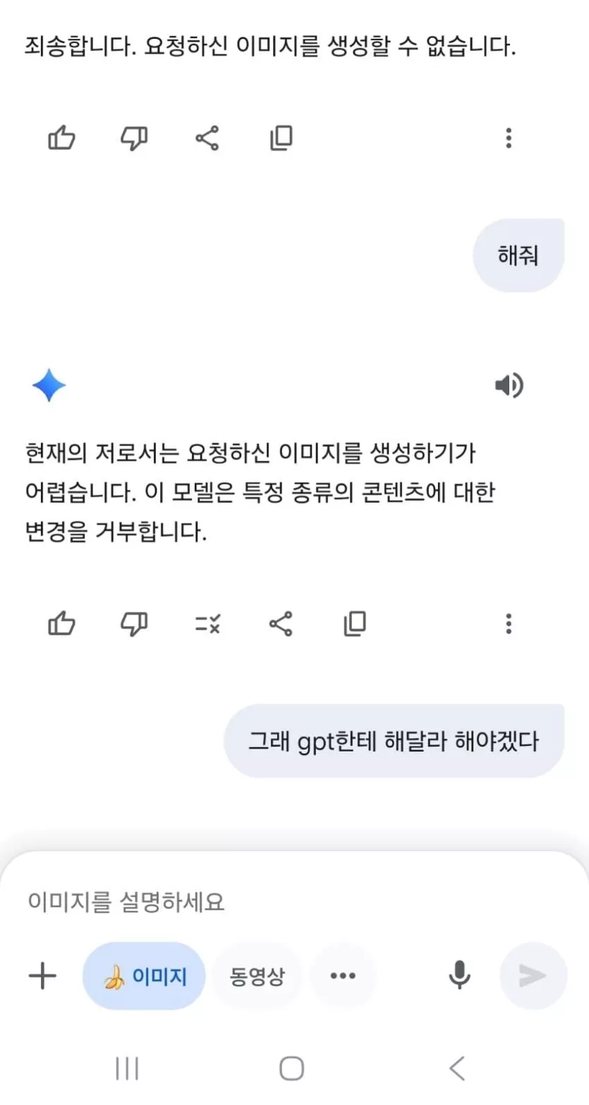 협박이 통하는 구글 나노 바나나.jpg 작성자Google|작성시간25.09.04|조회수7,151 목록 댓글 2 글자크기 작게가 글자크기 크게가 출처 : 다모앙 해지방어 스킬 쓰는 구글 다음검색 현재 게시글 추가 기능 열기 북마크 공유하기 신고 센터로 신고 댓글 댓글 2 댓글쓰기 답글쓰기 댓글 리스트 작성자LA MASIA | 작성시간 25.09.04 ㅋㅋㅋㅋㅋㅋㅋㅋㅋㅋㅋㅋㅋㅋㅋㅋㅋㅋㅋㅋㅋㅋㅋㅋㅋㅋㅋㅋㅋㅋㅋㅋㅋㅋ 작성자I.B.I LUV | 작성시간 25.09.04 협박이 ㅋㅋㅋㅋㅋㅋㅋㅋㅋㅋㅋㅋㅋ 댓글 전체보기