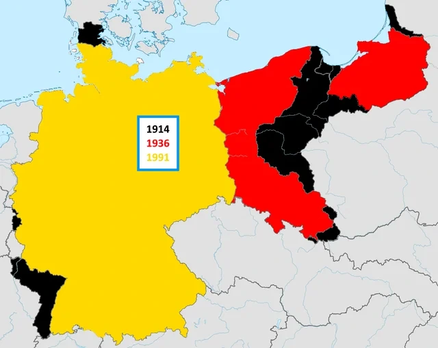 1914년 노란+빨강+검정이 독일제국 영토 (1차 세계대전 발발 직전)