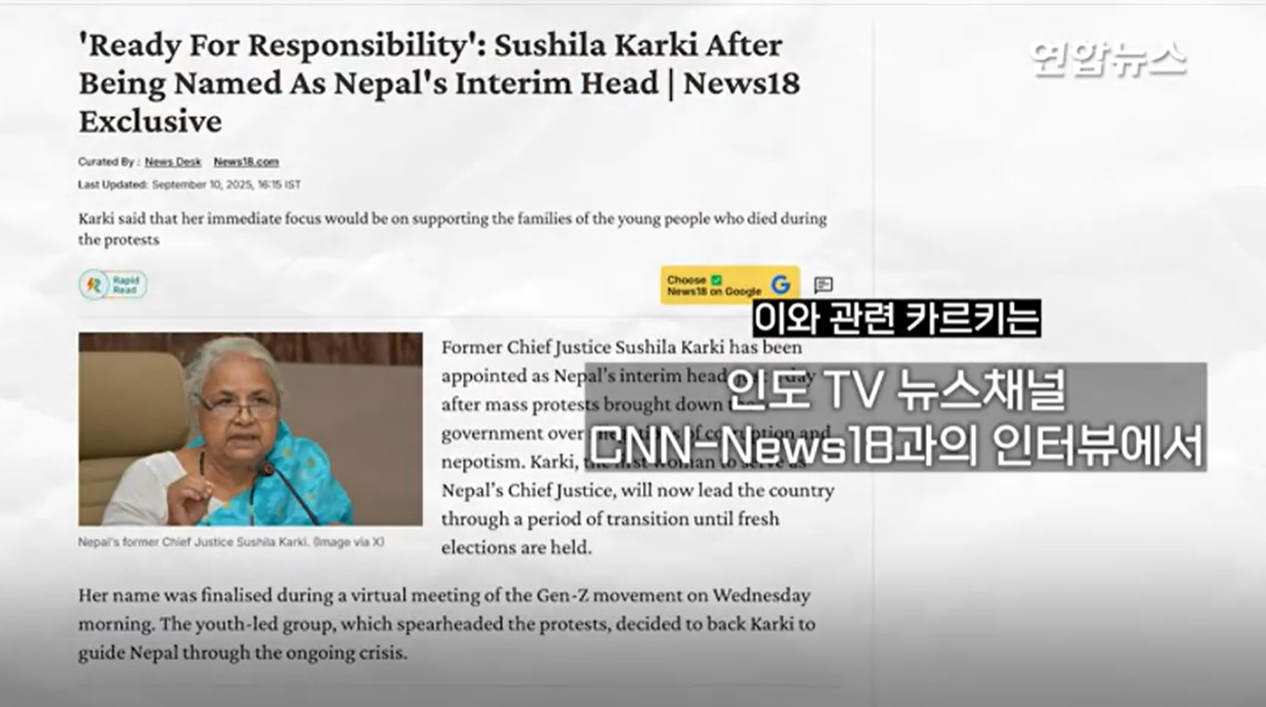반부패와 강단있는 판결로 대중적 지지를 받던 수실라 카르키, 임시 총리직 수락하며 네팔 사상 첫 여성 수반 총리 취임