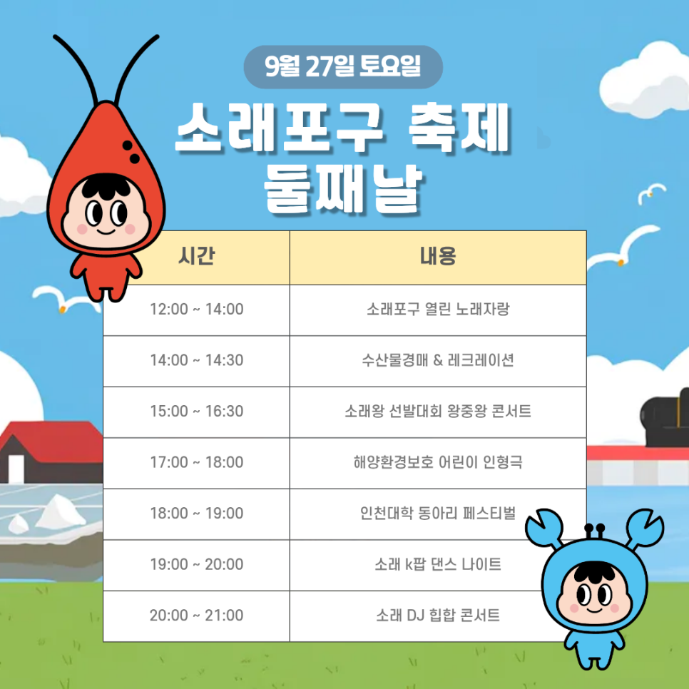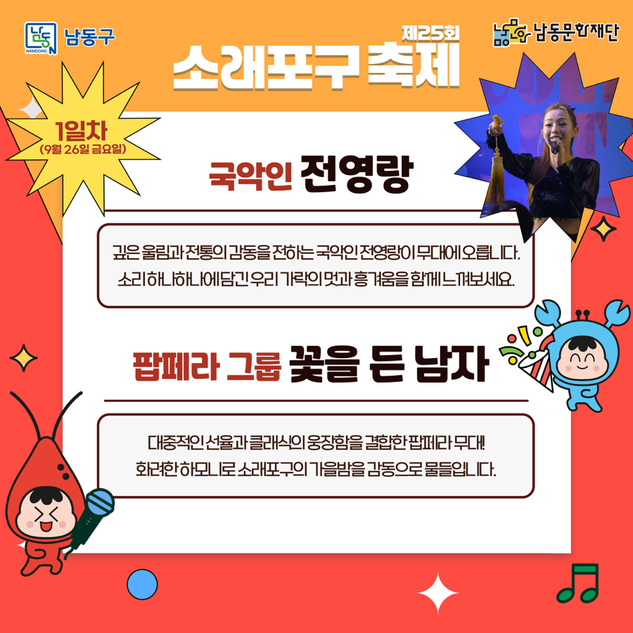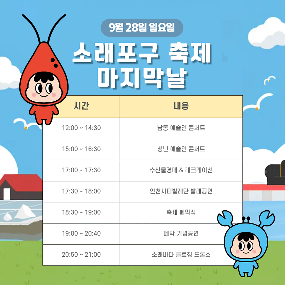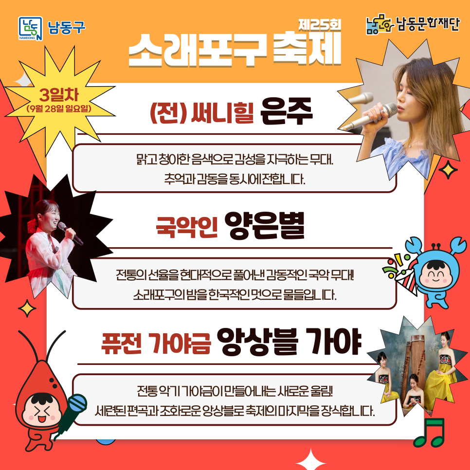 [연예]2025 인천 소래포구축제 공연 출연진 라인업.jpg 작성자탱구|작성시간25.09.25|조회수865 목록 댓글 3 글자크기 작게가 글자크기 크게가 다음검색 현재 게시글 추가 기능 열기 북마크 공유하기 신고 센터로 신고 댓글 댓글 3 댓글쓰기 답글쓰기 댓글 리스트 작성자그무언가 | 작성시간 25.09.25 작년엔 박정현 누나 왔었는데 ㅜㅜ 작성자오스먼트 | 작성시간 25.09.25 오 어반자카파! 작성자전북17이재성 | 작성시간 25.09.25 여기 소래포구 손님 상대로 맨날 사기치는 그곳 아님? 댓글 전체보기