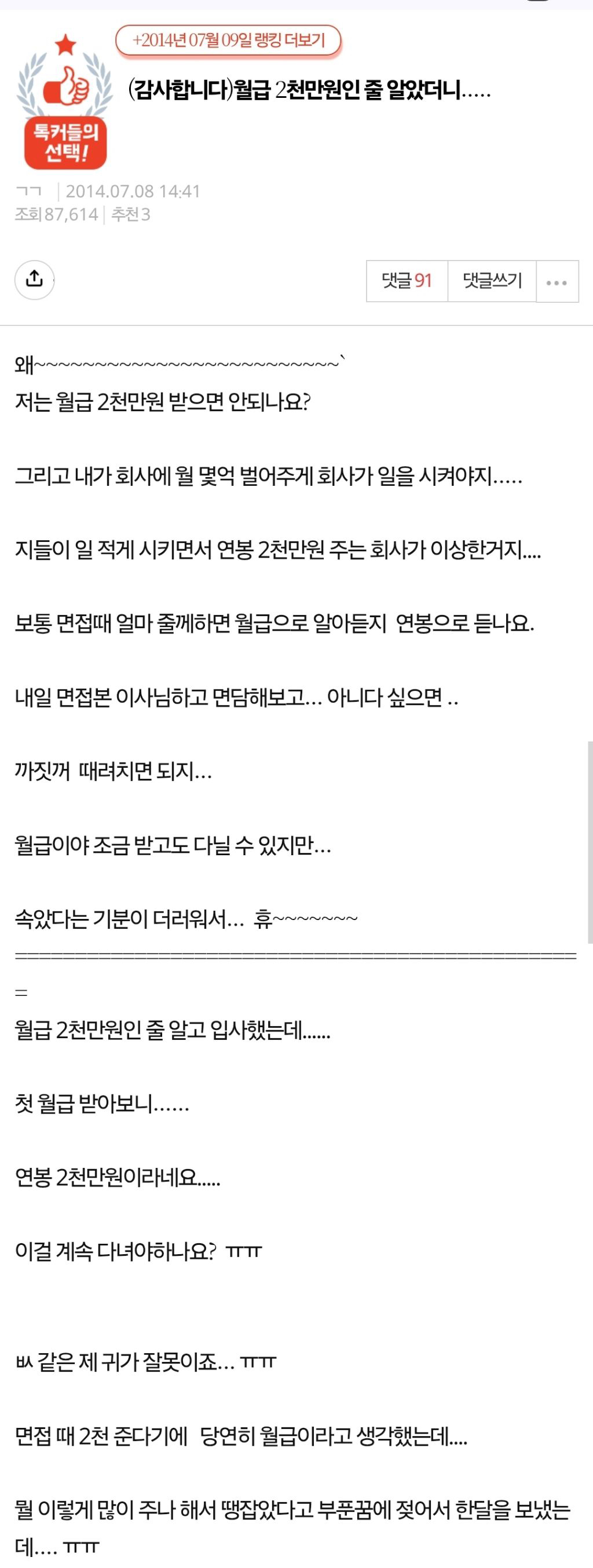 월급 2천만원으로 알고 입사한 글쓴이 작성자디자이너|작성시간25.10.14|조회수7,446 목록 댓글 13 글자크기 작게가 글자크기 크게가 https://m.pann.nate.com/talk/323355762(감사합니다)월급 2천만원인 줄 알았더니..... | 네이트 판회사생활 - 꼭댓글부탁 : 왜~~~~~~~~~~~~~~~~~~~~~~~~~`저는 월급 2천만원 받으면 안되나요? 그리고 내가 회사에 월 몇억 벌어주게 회사가 일을 시켜야지..... 지들이 일 적게 시키...pann.nate.com 다음검색 현재 게시글 추가 기능 열기 북마크 공유하기 신고 센터로 신고 댓글 댓글 13 댓글쓰기 답글쓰기 댓글 리스트 작성자우정잉5 | 작성시간 25.10.14 저 능지로 어떻게... 작성자정신아픔이 | 작성시간 25.10.14 지금 캄보디아 가있을 듯 작성자주ㅕ니애비 | 작성시간 25.10.14 알고있네 ㅂㅇ이 멍청한거....진짜 캄보디아 누가가?? 저런애들이 가는거임... 작성자금요일 | 작성시간 25.10.14 에구 ㅠㅠ 작성자똘깅 | 작성시간 25.10.14 저개 진짜라면 진지하게 지능장애가 성격까지 안좋은 케이스네 댓글 전체보기