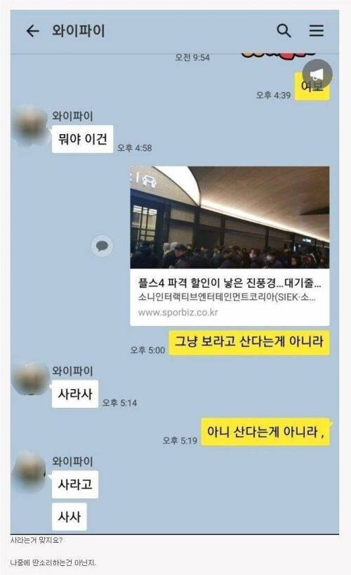 이거 와이프가 허락한거 맞지? 작성자인조인간 17호|작성시간25.10.14|조회수9,305 목록 댓글 12 글자크기 작게가 글자크기 크게가 다음검색 현재 게시글 추가 기능 열기 북마크 공유하기 신고 센터로 신고 댓글 댓글 12 댓글쓰기 답글쓰기 댓글 리스트 작성자홀란드샴푸 | 작성시간 25.10.14 허락은 맞음.어지간히 질리게 만든듯 ㅋㅋㅋㅋ 작성자금요일 | 작성시간 25.10.14 ㅋㅋㅋㅋㅋㅋㅋㅋㅋㅋㅋㅋㅋㅋㅋㅋㅋ 작성자박보노 | 작성시간 25.10.14 난 저러면 그냥 삼그래야 다음부턴 정확히 말함 사면 죽인다고 작성자라즈베리 | 작성시간 25.10.15 사면 죽는거임 작성자장cod | 작성시간 25.10.15 일단 저지르고 용서를 구하는거라 했음. 허락을 구할필욘 없음. 댓글 전체보기