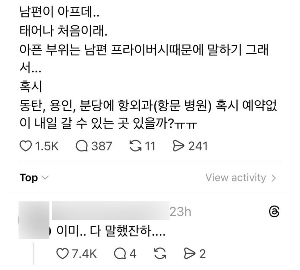 해맑은 와이프 작성자러바오|작성시간25.10.15|조회수4,673 목록 댓글 1 글자크기 작게가 글자크기 크게가 다음검색 현재 게시글 추가 기능 열기 북마크 공유하기 신고 센터로 신고 댓글 댓글 1 댓글쓰기 답글쓰기 댓글 리스트 작성자JTBC | 작성시간 25.10.15 남편 똥꾸멍 아픈거 절대 말 안하네 댓글 전체보기