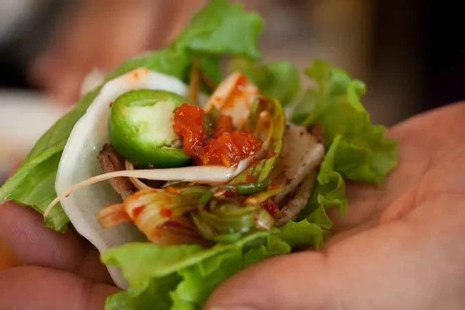 작성자수원삼성블루윙즈 작성시간 25.10.16 고기 한점에 상추 깻잎 마늘 고추 파채 양파 콩나물 김치 다양하게 조합 가능