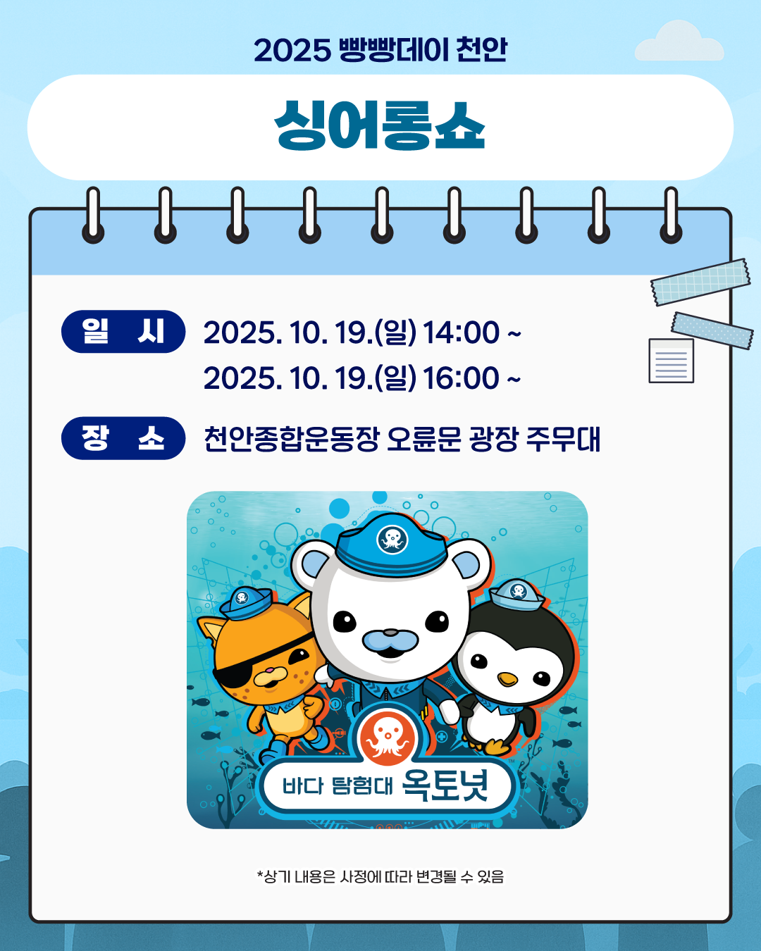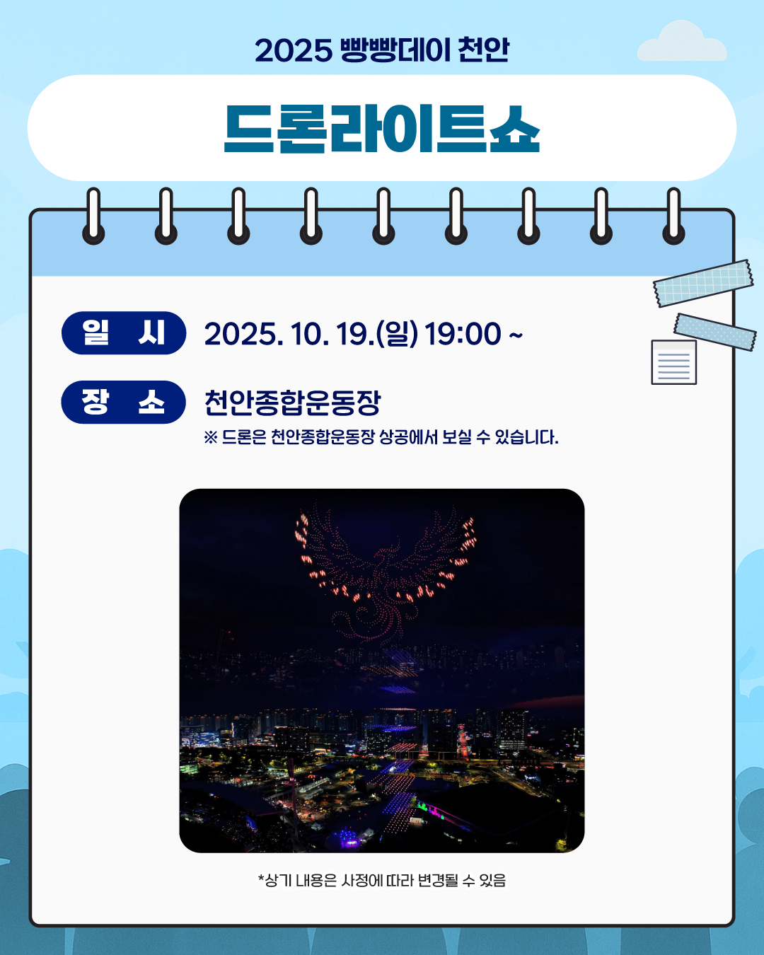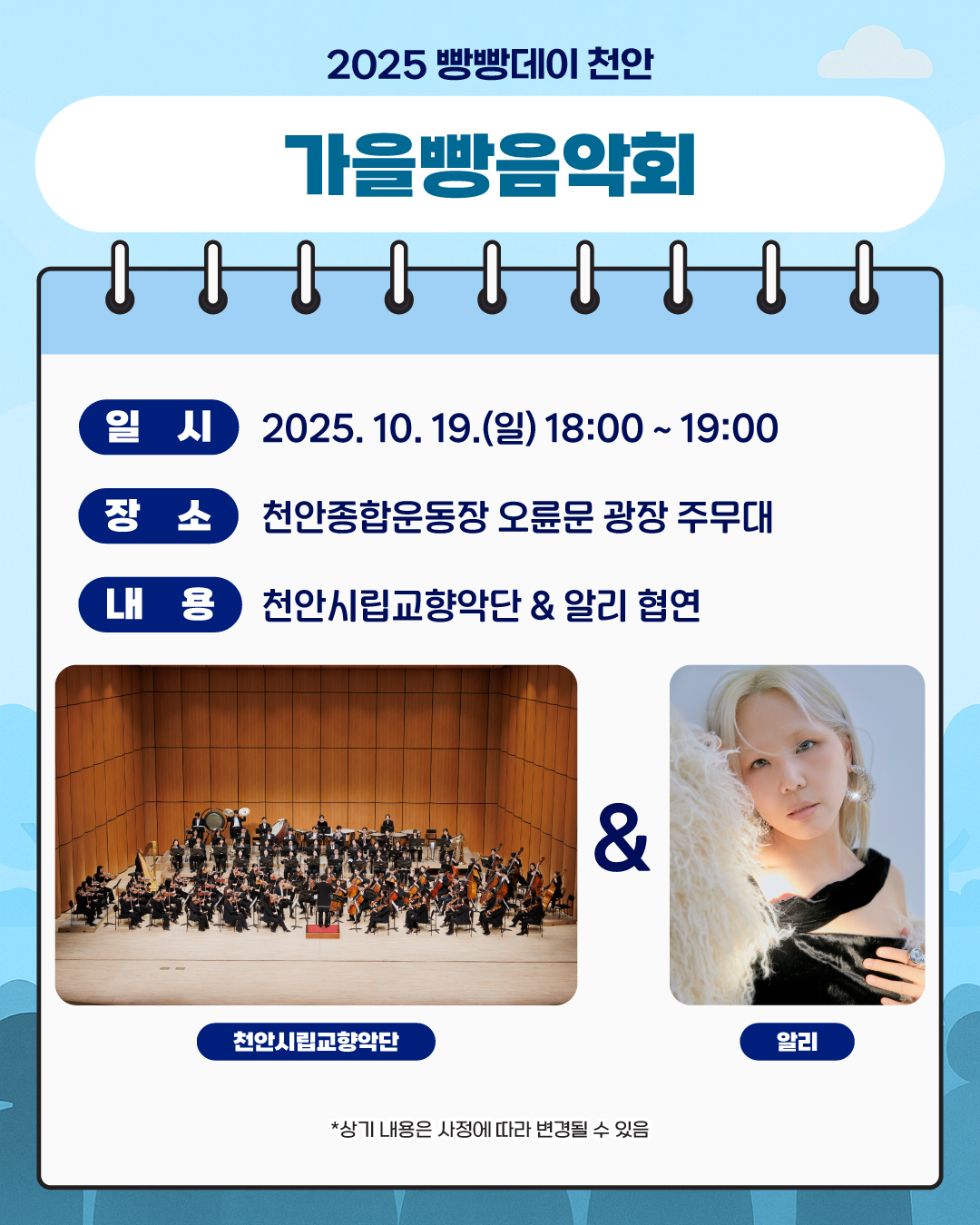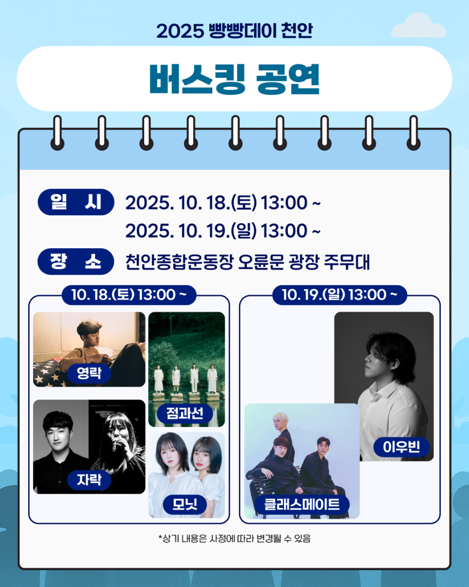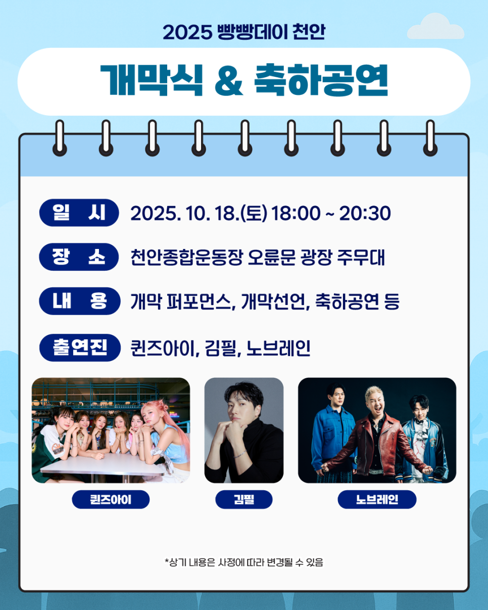 [연예]2025 천안 빵빵데이 공연 출연진 라인업.jpg 작성자탱구|작성시간25.10.16|조회수662 목록 댓글 1 글자크기 작게가 글자크기 크게가 다음검색 현재 게시글 추가 기능 열기 북마크 공유하기 신고 센터로 신고 댓글 댓글 1 댓글쓰기 답글쓰기 댓글 리스트 작성자H_Crespo | 작성시간 25.10.16 개막멤버는 화려! 댓글 전체보기