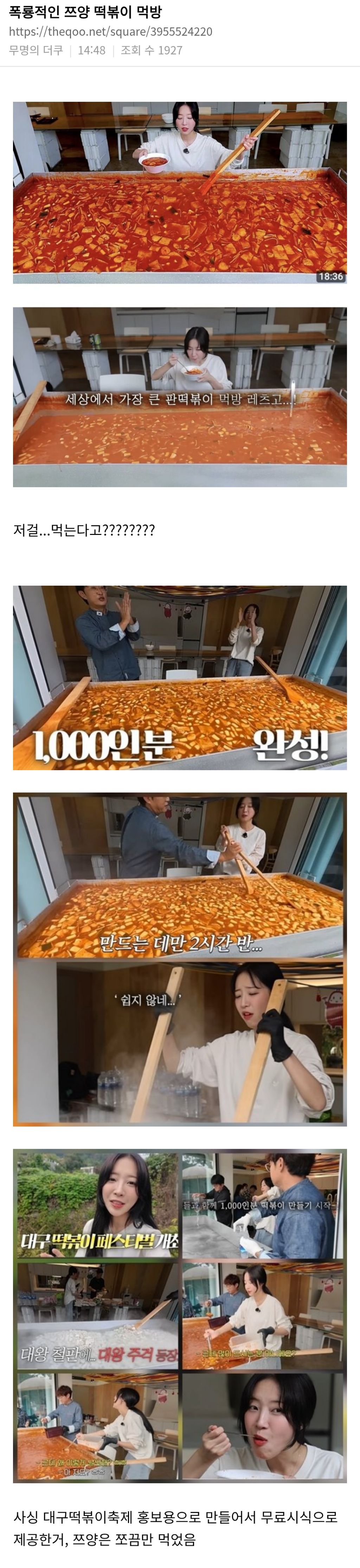 폭룡적인 쯔양 떡볶이 먹방 작성자러바오|작성시간25.10.17|조회수8,800 목록 댓글 11 글자크기 작게가 글자크기 크게가 https://theqoo.net/square/3955524220 다음검색 현재 게시글 추가 기능 열기 북마크 공유하기 신고 센터로 신고 댓글 댓글 11 댓글쓰기 답글쓰기 댓글 리스트 작성자Clarence Seedorf | 작성시간 25.10.17 수영장 같다 작성자아이올로스 | 작성시간 25.10.17 무서워 ㄷㄷ 작성자Arsenal No.1 | 작성시간 25.10.17 그치 아무리 쯔양이라더 저건 힘들겠지 작성자금요일 | 작성시간 25.10.17 헐 작성자박상미 | 작성시간 25.10.17 ㄷㄷ 댓글 전체보기