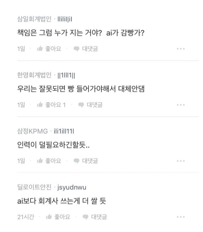 AI가 발전하면 그걸 이용하는 회계사가 늘어나지 회계사라는 직업이 사라지진 않음.