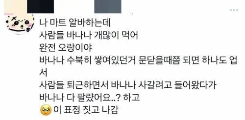 [기타]마트나 물류알바 해보면 알 수 있는 사실 작성자음교수2|작성시간25.10.23|조회수26,264 목록 댓글 3 글자크기 작게가 글자크기 크게가 다음검색 현재 게시글 추가 기능 열기 북마크 공유하기 신고 센터로 신고 댓글 댓글 3 댓글쓰기 답글쓰기 댓글 리스트 작성자김정은 | 작성시간 25.10.23 우끼끼 작성자서강대학교 | 작성시간 25.10.23 간편하게 열량 보충할 수 있는게 바나나만한게 없음 그러니 운동선수들도 먹고 작성자아스날리쉬 | 작성시간 25.10.23 먹기 편함 껍질 까기도 편하고 댓글 전체보기